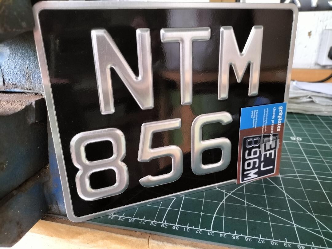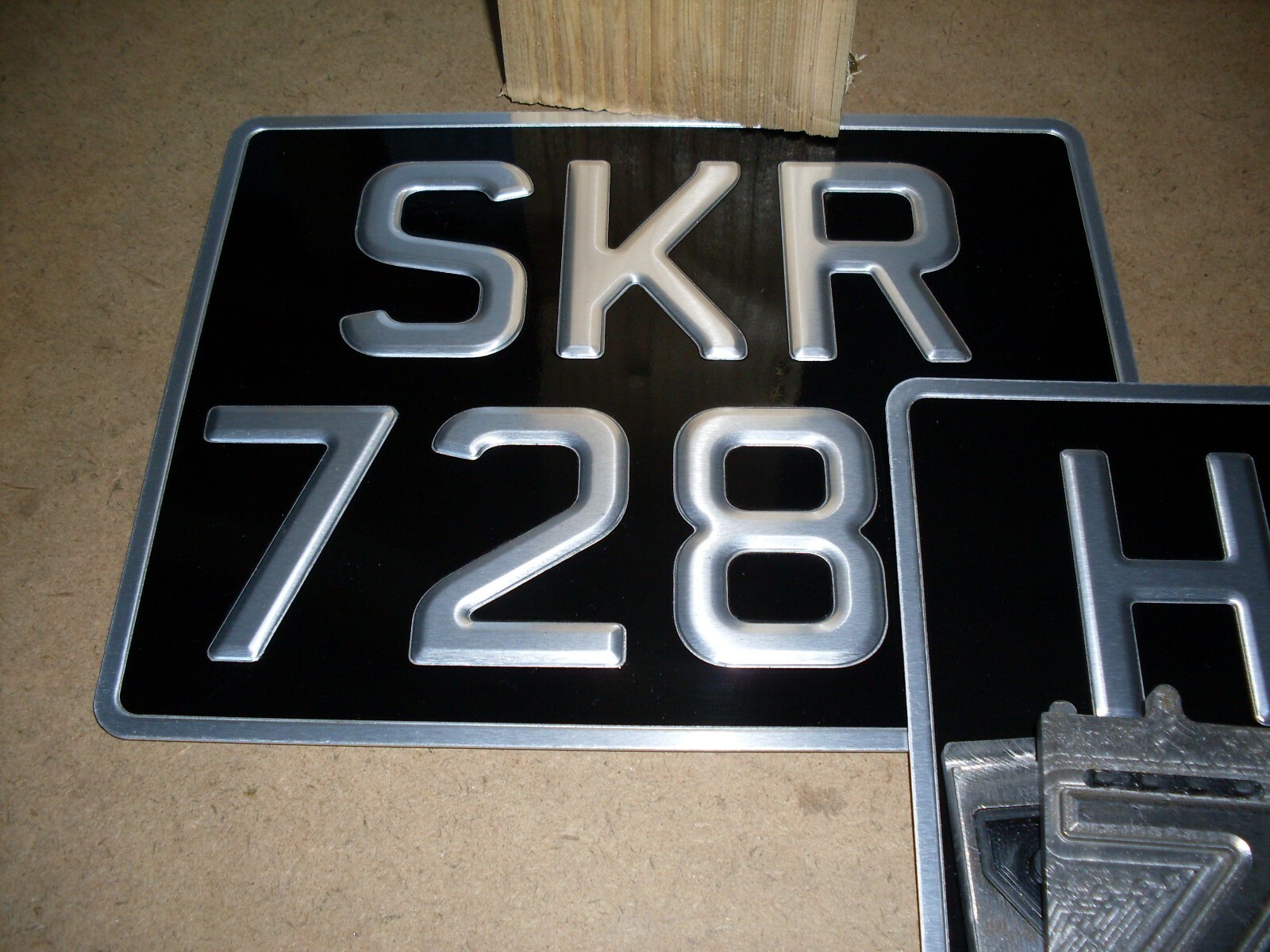Pressed using the correct Charles wright font & legally spaced complying with DVLA regulations.