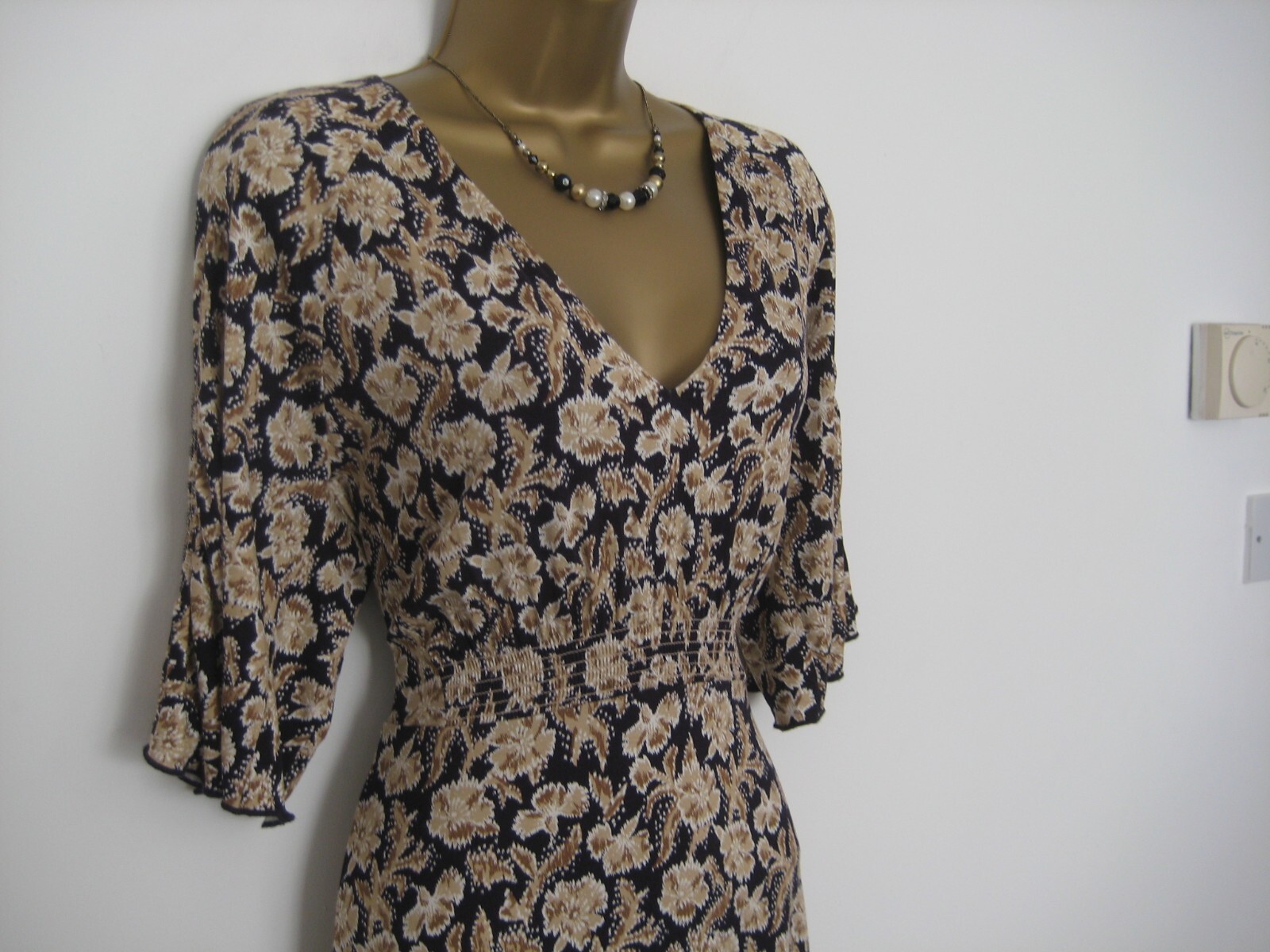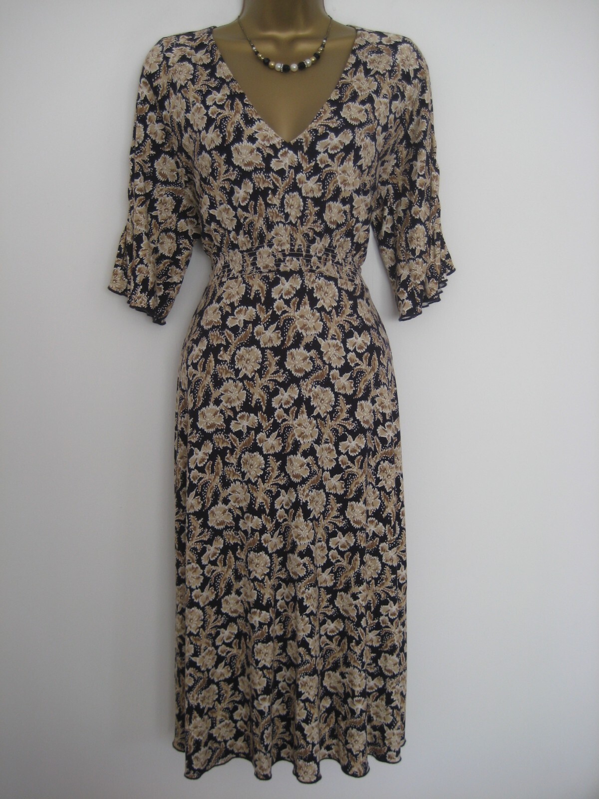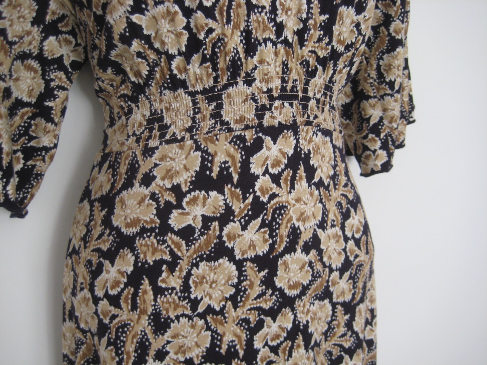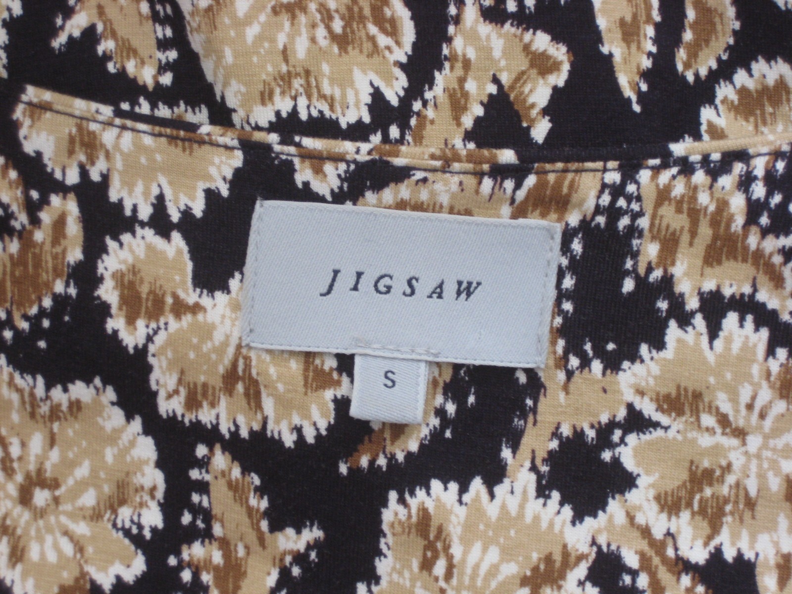 Jigsaw black and brown leaves dress size Small UK 10