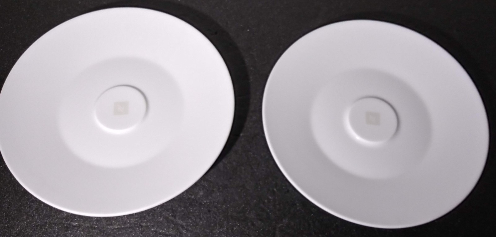 The Set of 2 NESPRESSO Big Game Saucers is a stylish and modern addition to any coffee lover's collection. Made of porcelain and featuring a solid white color with a round center design, these saucers are perfect for serving espresso in style. With a contemporary design and a logo theme, these saucers are both functional and decorative, making them ideal for all occasions. Made by Nespresso, the trusted brand in coffee, these saucers are sure to impress your guests and elevate your coffee-drinking experience.