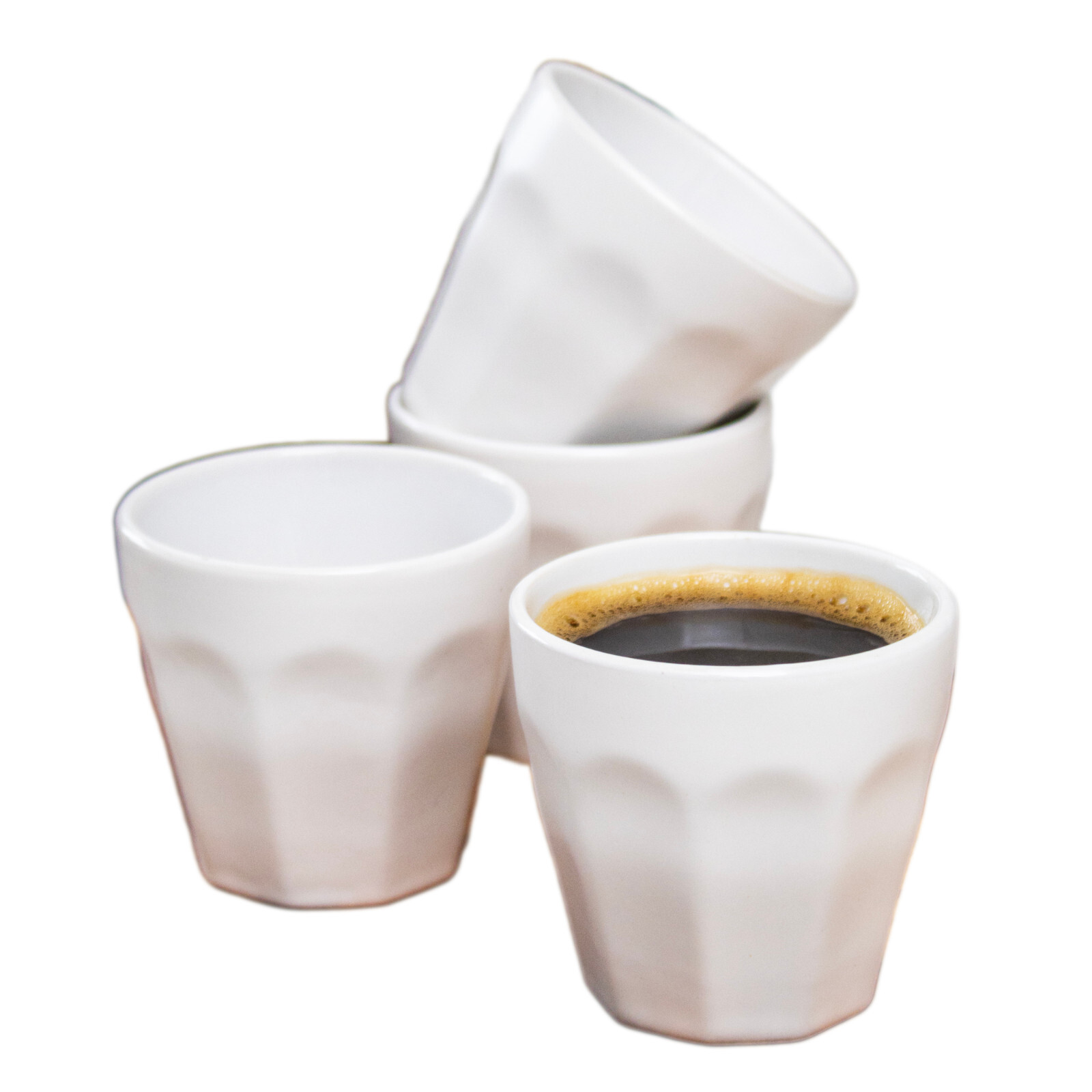 Start your day with a touch of modern style with this set of 4 stoneware espresso cups, designed for rich, full-bodied coffee moments. Featuring a classic panelled design and a matte white finish, these cups bring a minimalist yet sophisticated look to any kitchen or coffee station.