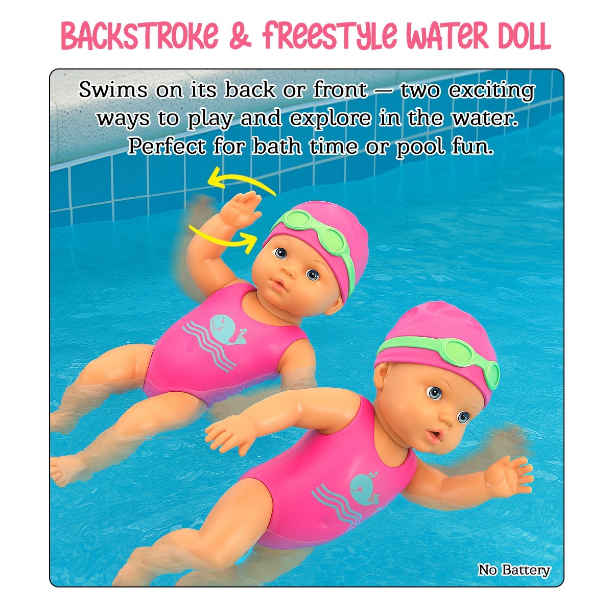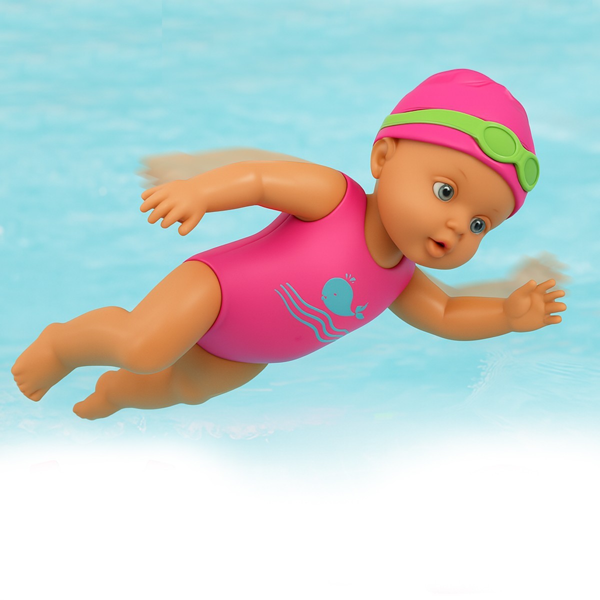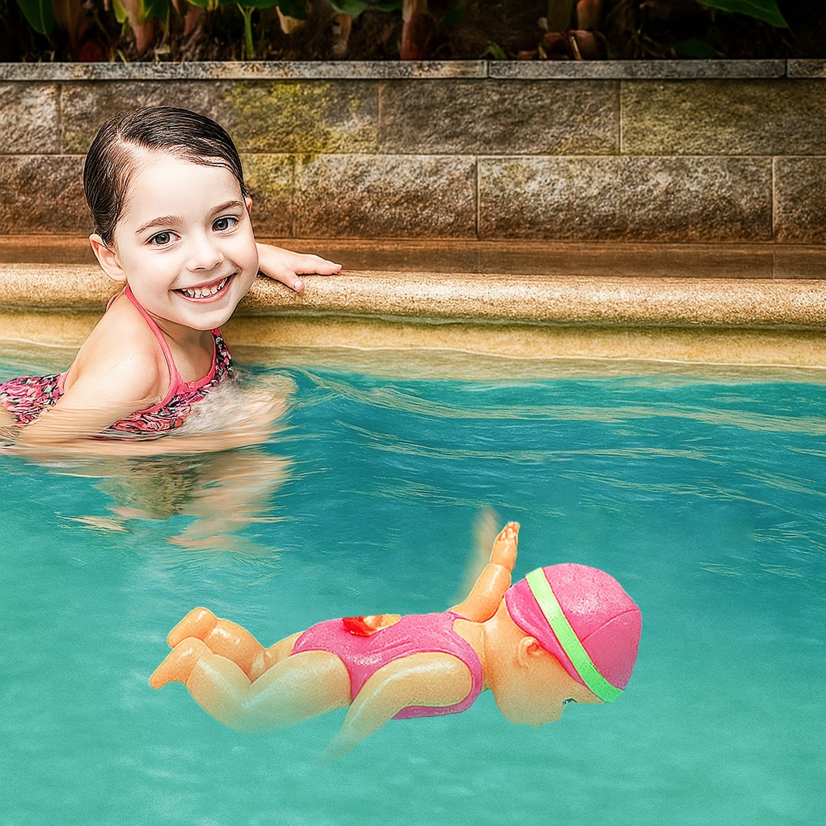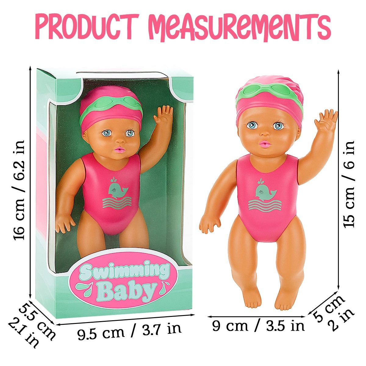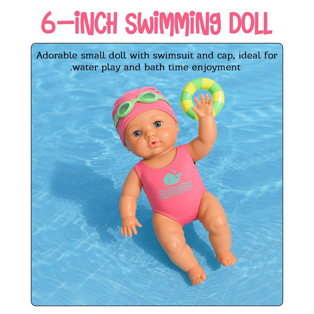 6-Inch Water Swimming Baby Doll with Moving Arms – Swimming Pool & Bath Toy, Includes Swimsuit, Cap & Goggles