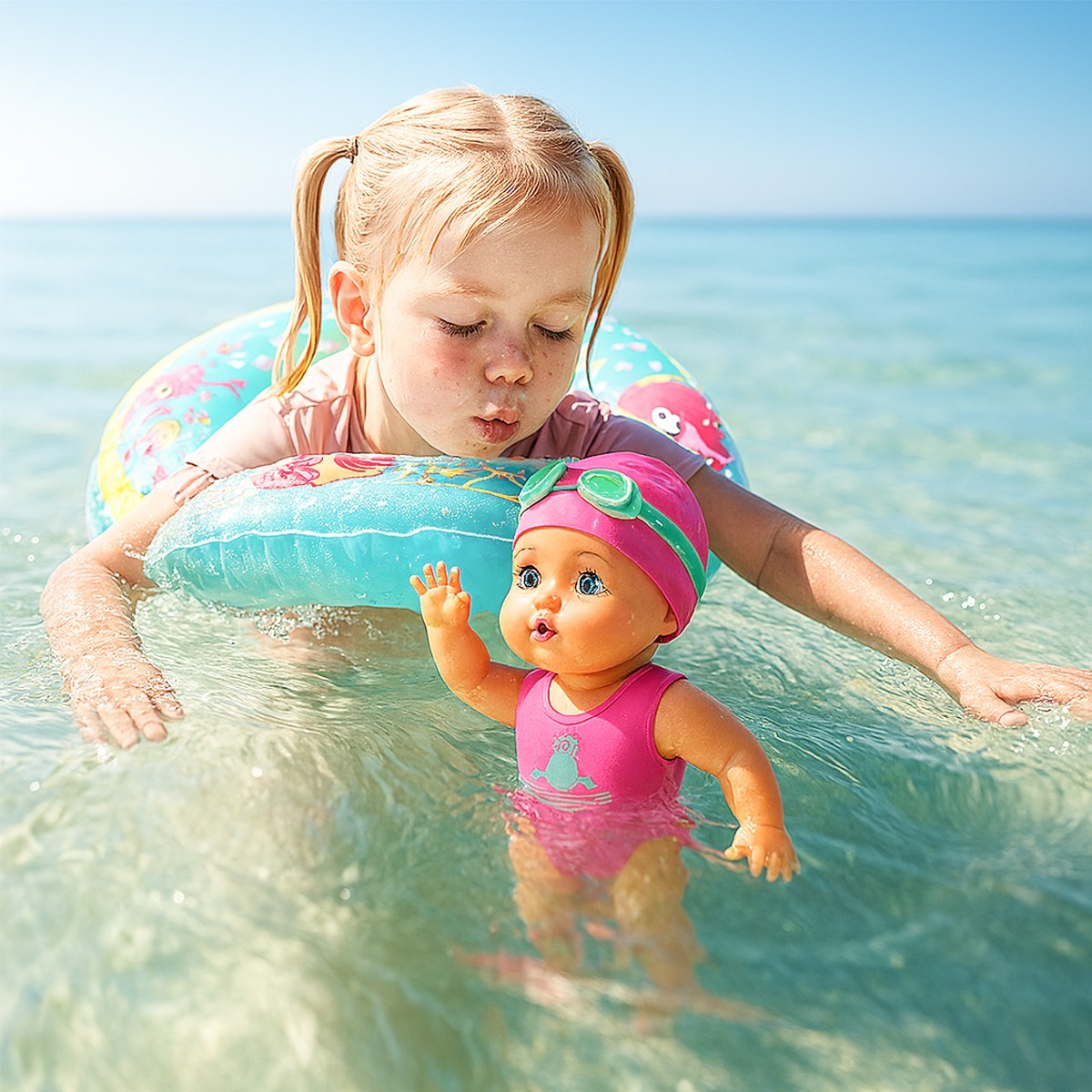 Compact & Gift-Ready: Doll size: 15 × 9 × 6 cm. Box size: 16 × 5.5 × 9.5 cm. Lightweight and perfect for bath time, pool fun, or outdoor water play.