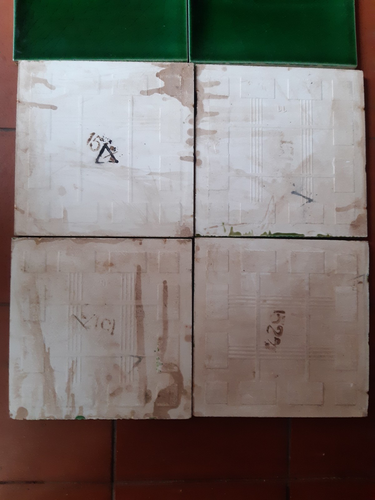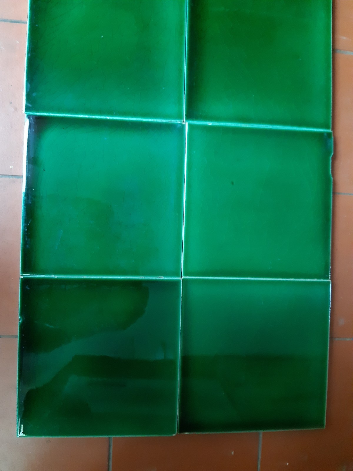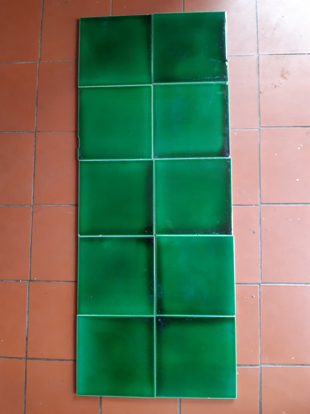 Set of 10 Original Victorian/Edwardian Circa 1900 Emerald Green 6"×6" x 3/8" thick Fireplace Tiles All the Tiles are in very good used antique condition as can be seen in the pictures. Ideal for a cast iron fireplace or a hearth.