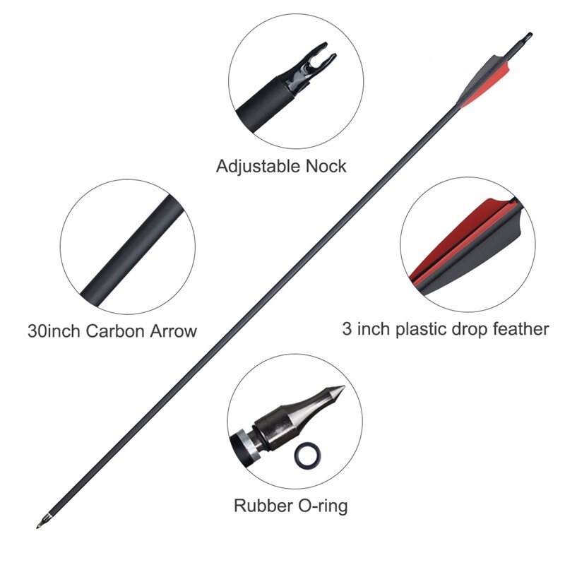Material: mixed carbon shaft, steel tips, plastic nocks, TPU vanes