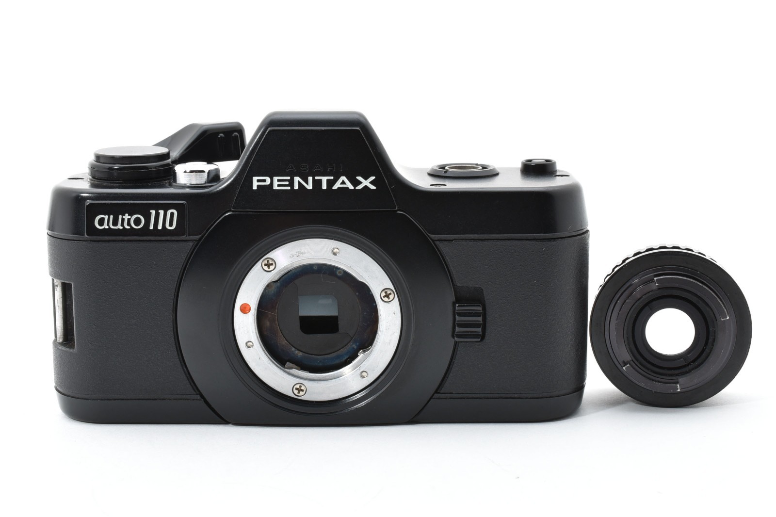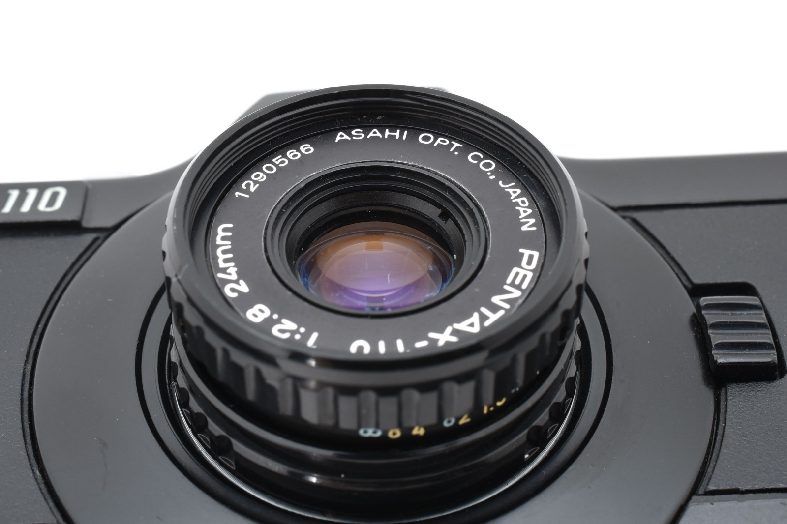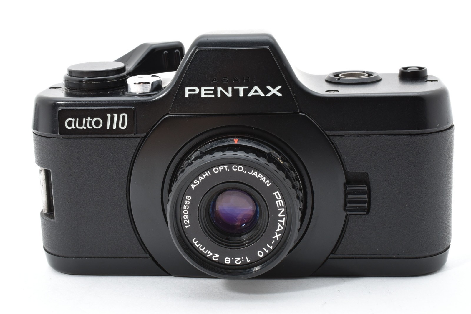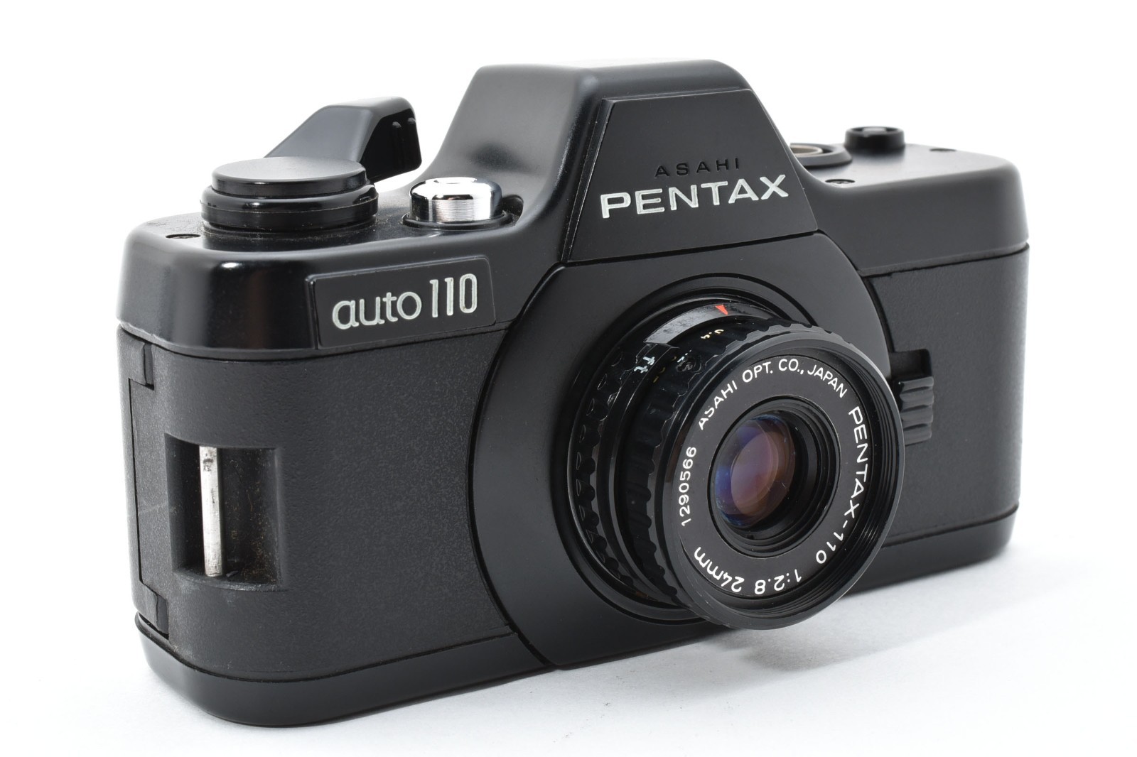 The Pentax Auto 110 is the world's smallest interchangeable-lens SLR, a masterpiece of miniature engineering that fits in the palm of your hand. Despite its tiny size, it features a true TTL metering system and comes equipped with the sharp Pentax-110 24mm f/2.8 lens. Perfect for both enthusiasts of subminiature photography and collectors, this iconic camera offers a unique blend of vintage charm and the sophisticated functionality of a professional-grade SLR system.