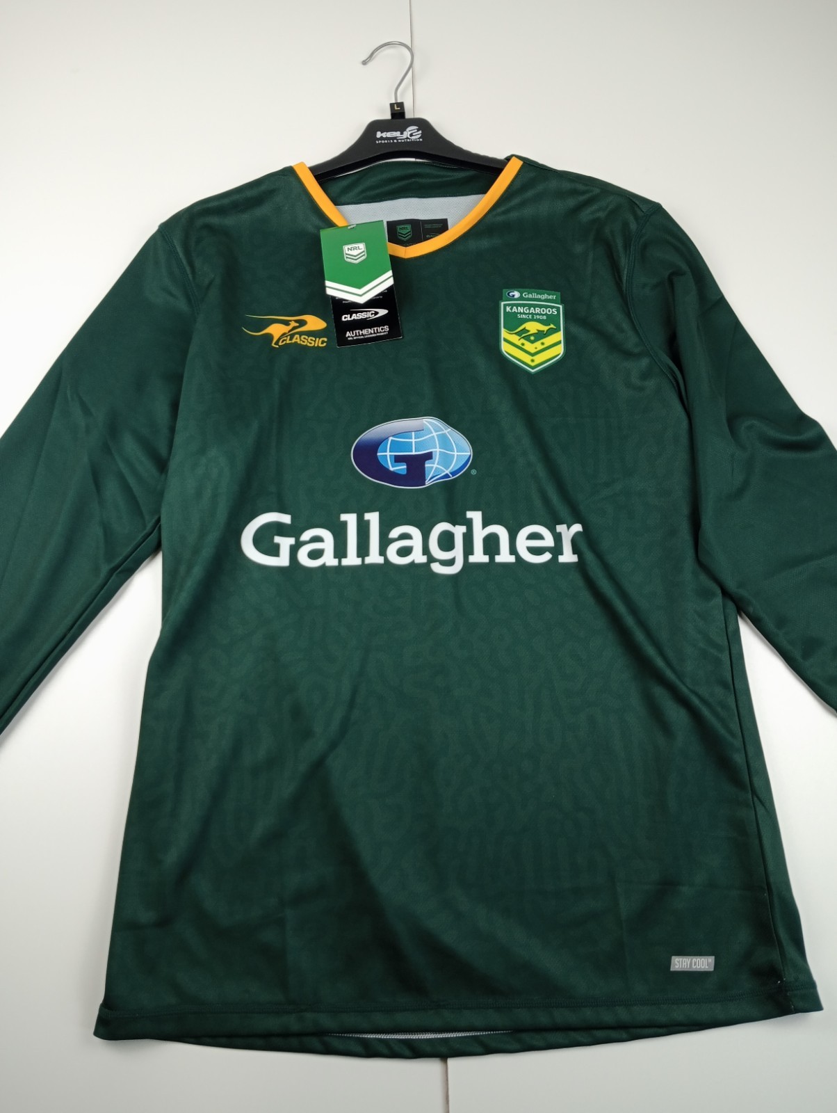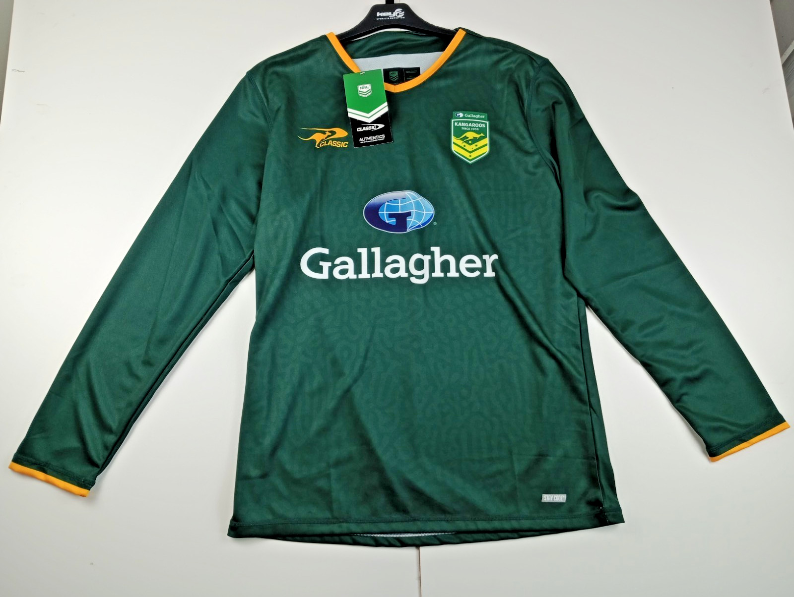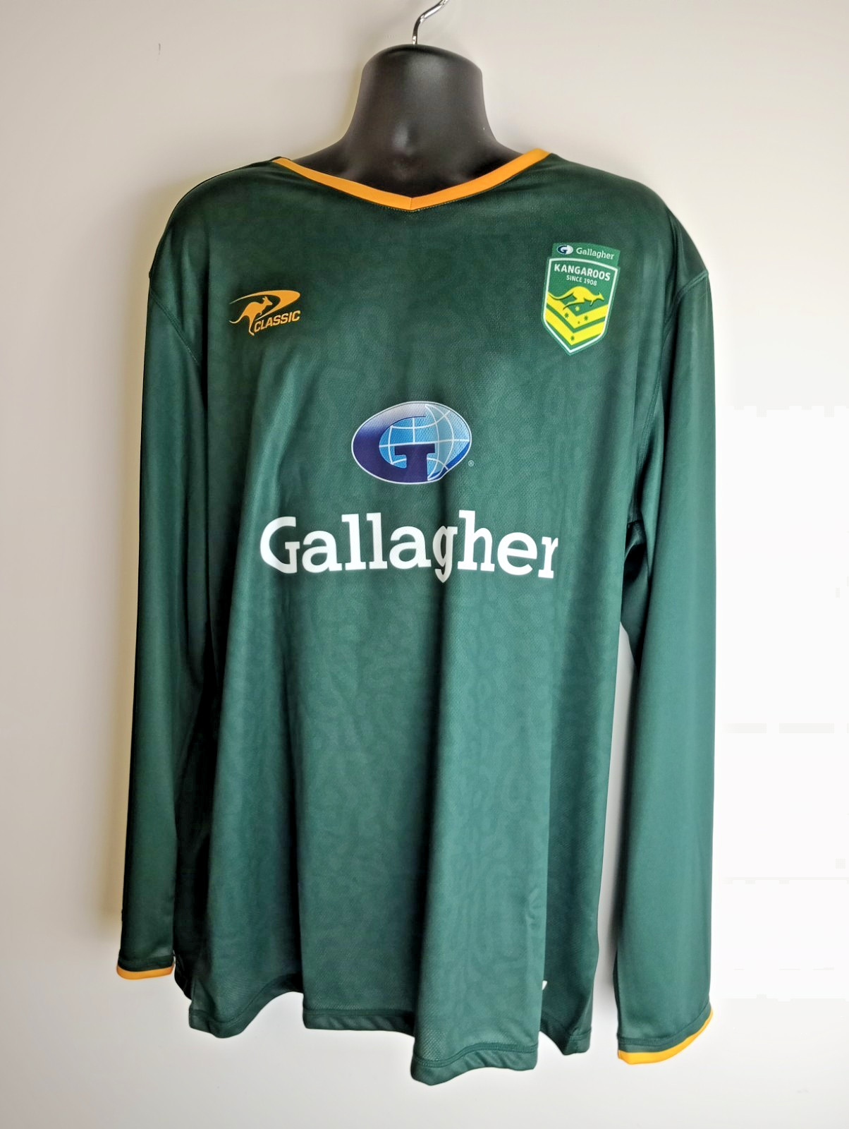 This Australia Kangaroos Rugby League Long Sleeve Training Top is a stylish and practical choice for male fans of the sport. The green shirt, featuring the official NRL branding, is designed for adults to wear during training sessions or casual matches. Size: 2XL. XXL. Any questions feel free to send me a message. Thanks for looking. :) ** In the unlikely event that there is a problem with your item upon receiving it, please can I ask to send a message for us to discuss a resolution before leaving any feedback, Thank you. **
