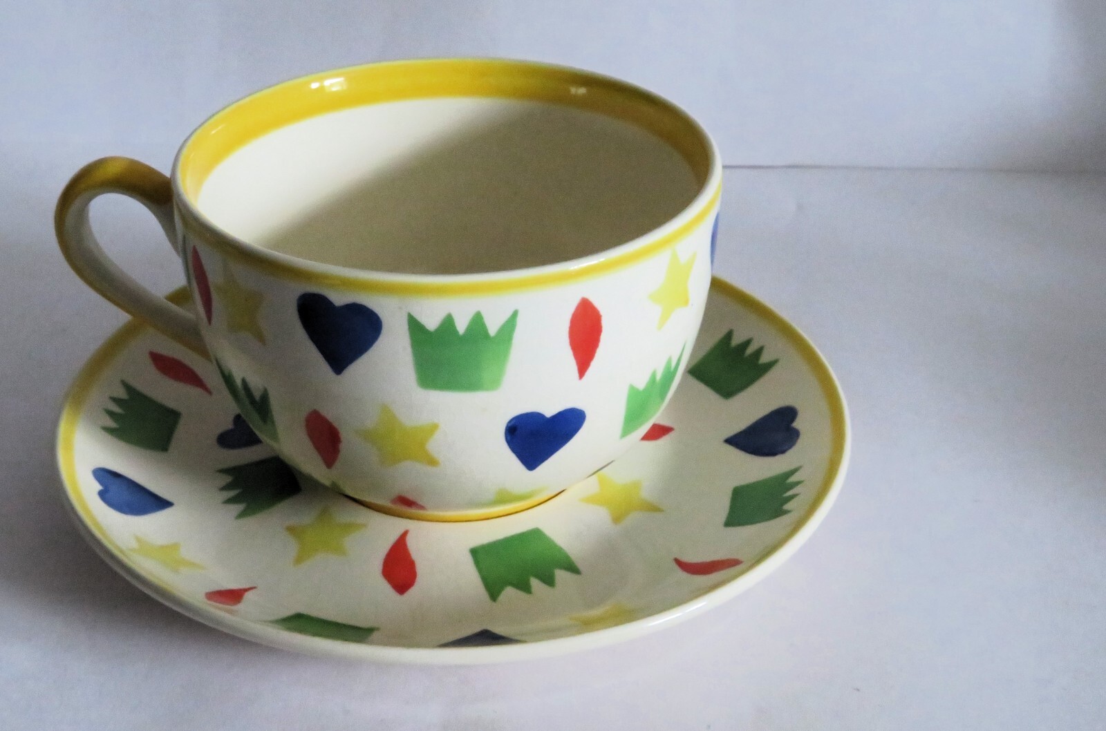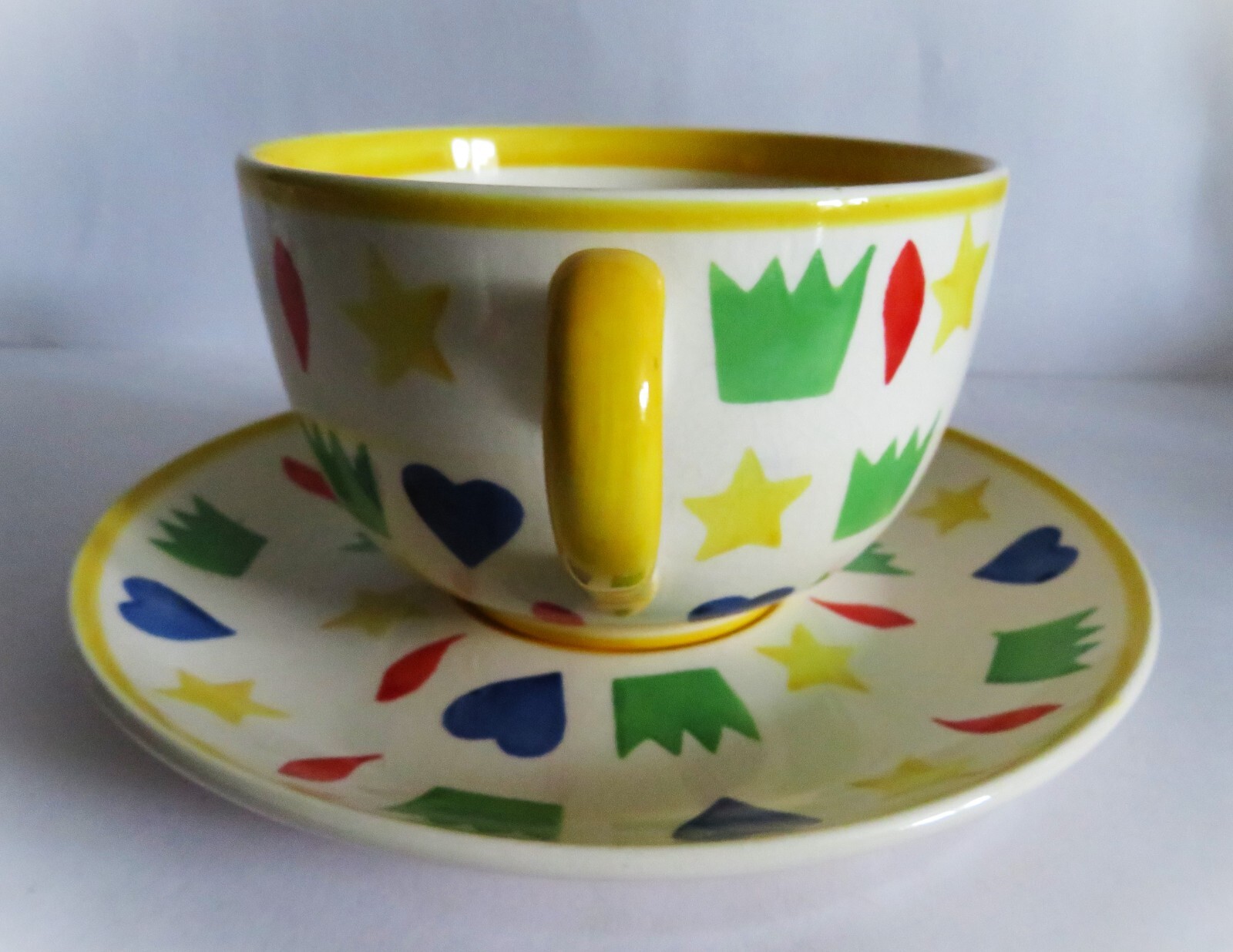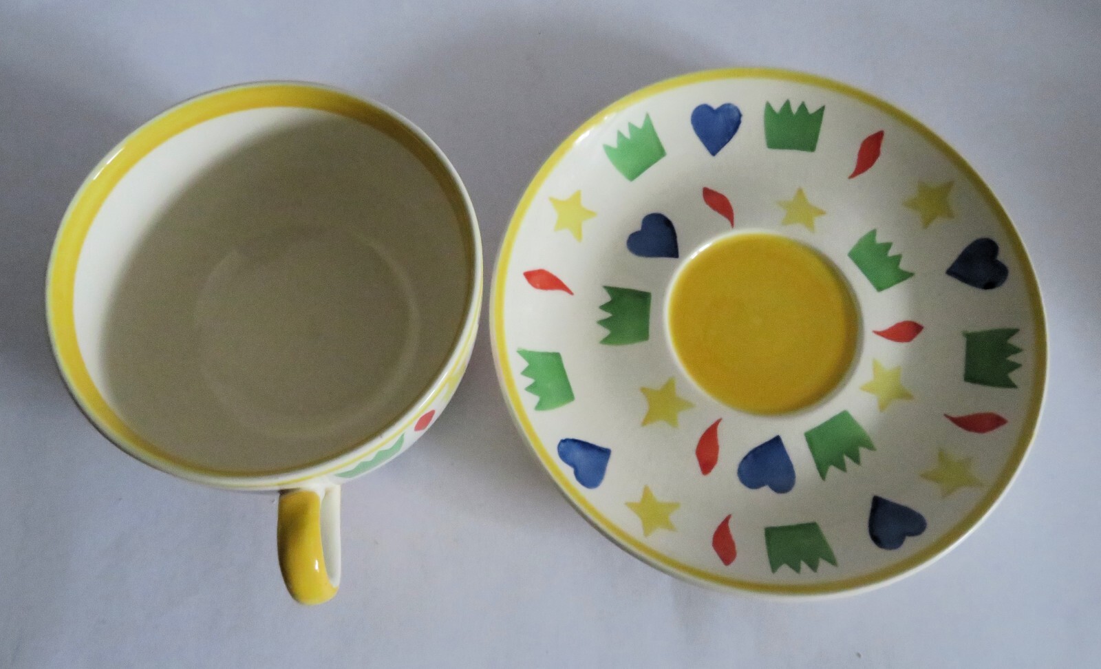 Cup measures approx 8cm tall and 12.5cm wide, saucer measures 20cm diameter