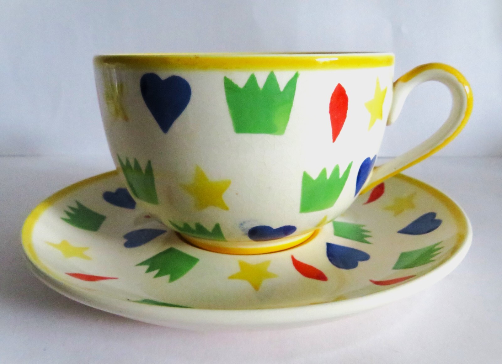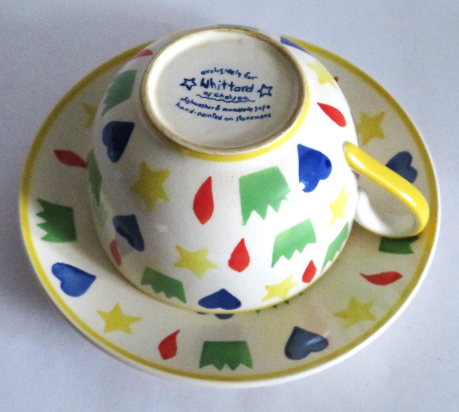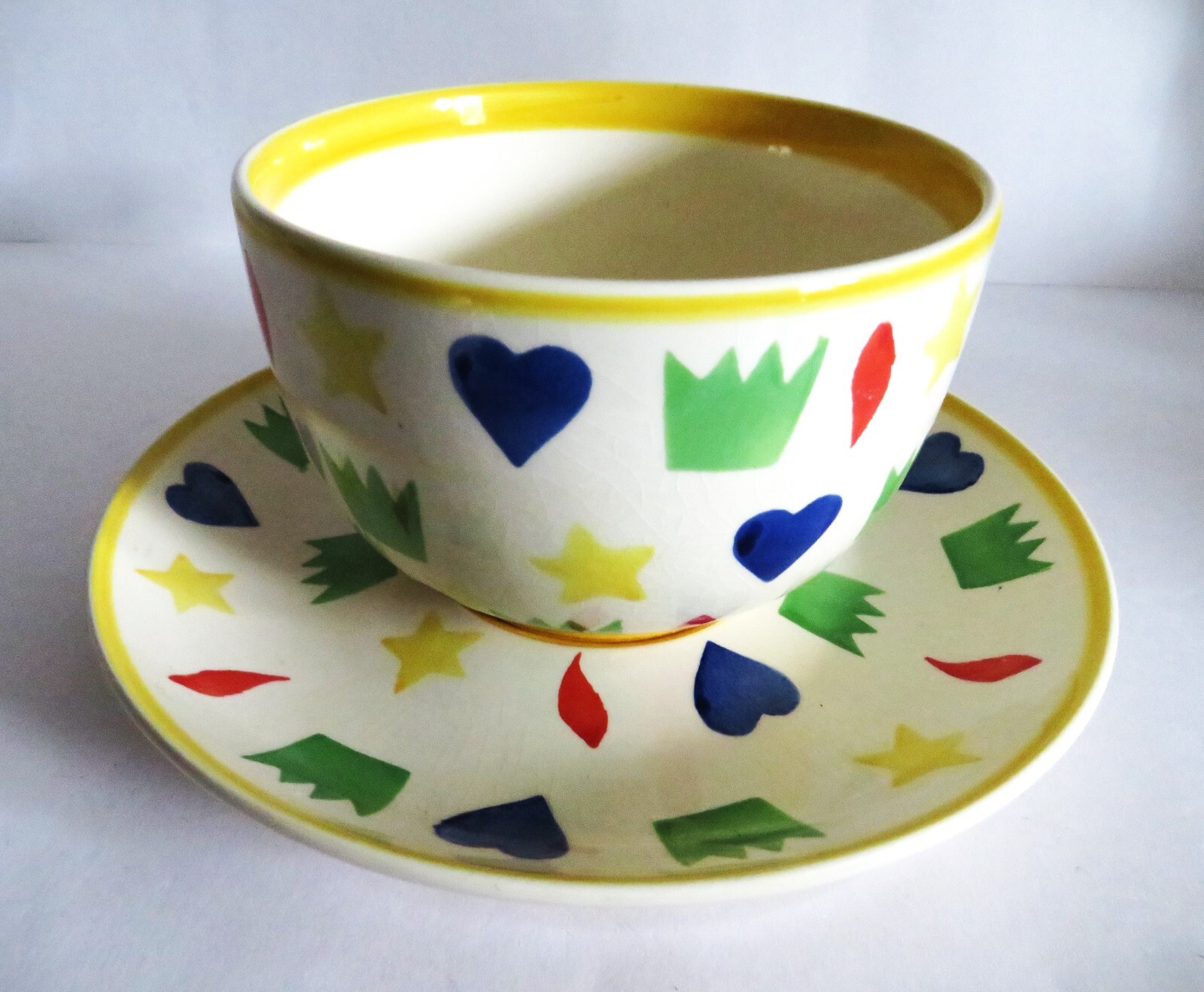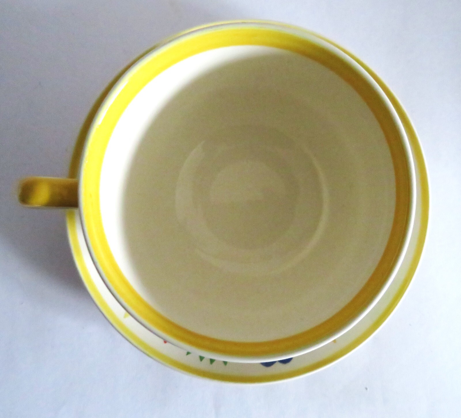 Cup measures approx 8cm tall and 12.5cm wide, saucer measures 20cm diameter