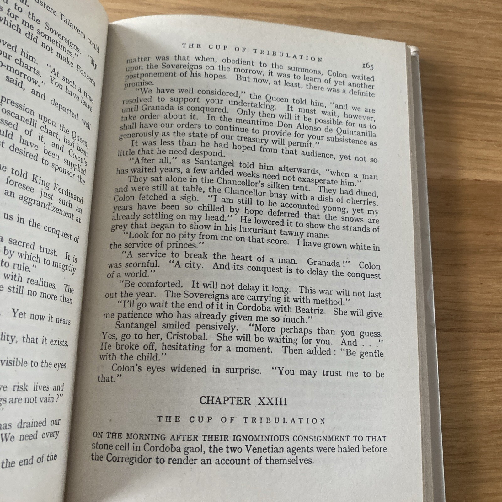 This antique book is a collector's dream come true. Written by Rafael Sabatini, the 1943 edition of Columbus is a hardback copy filled with the romance and saga of the famous explorer. The book is written in English, making it accessible to a wide audience.