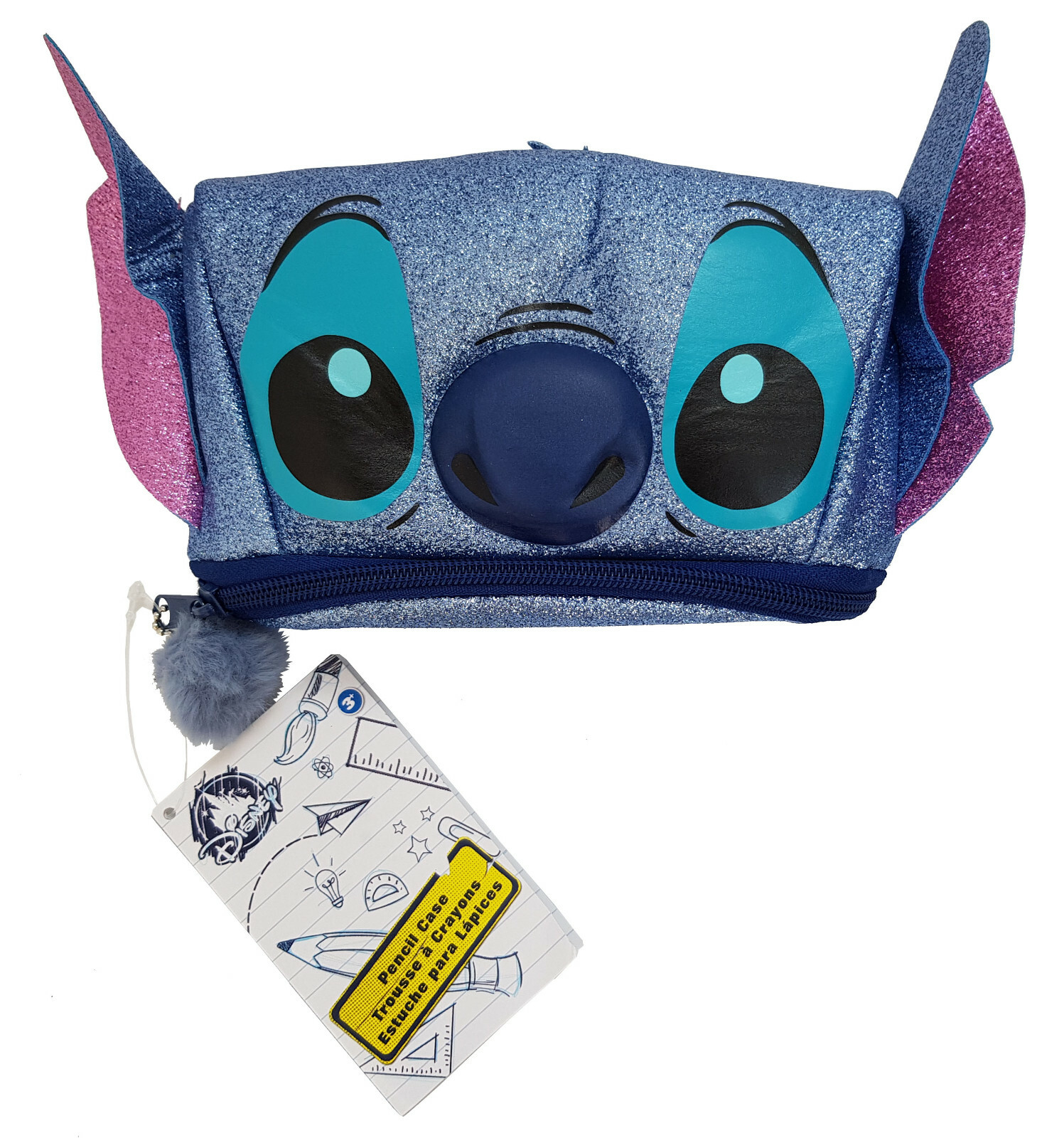 Stitch is ready to fill his face with your favourite pencils and stationery essentials! This glittering pencil case in the shape of Experiment 626's face is fully lined, features 3D ears and comes with a pom-pom zipper.