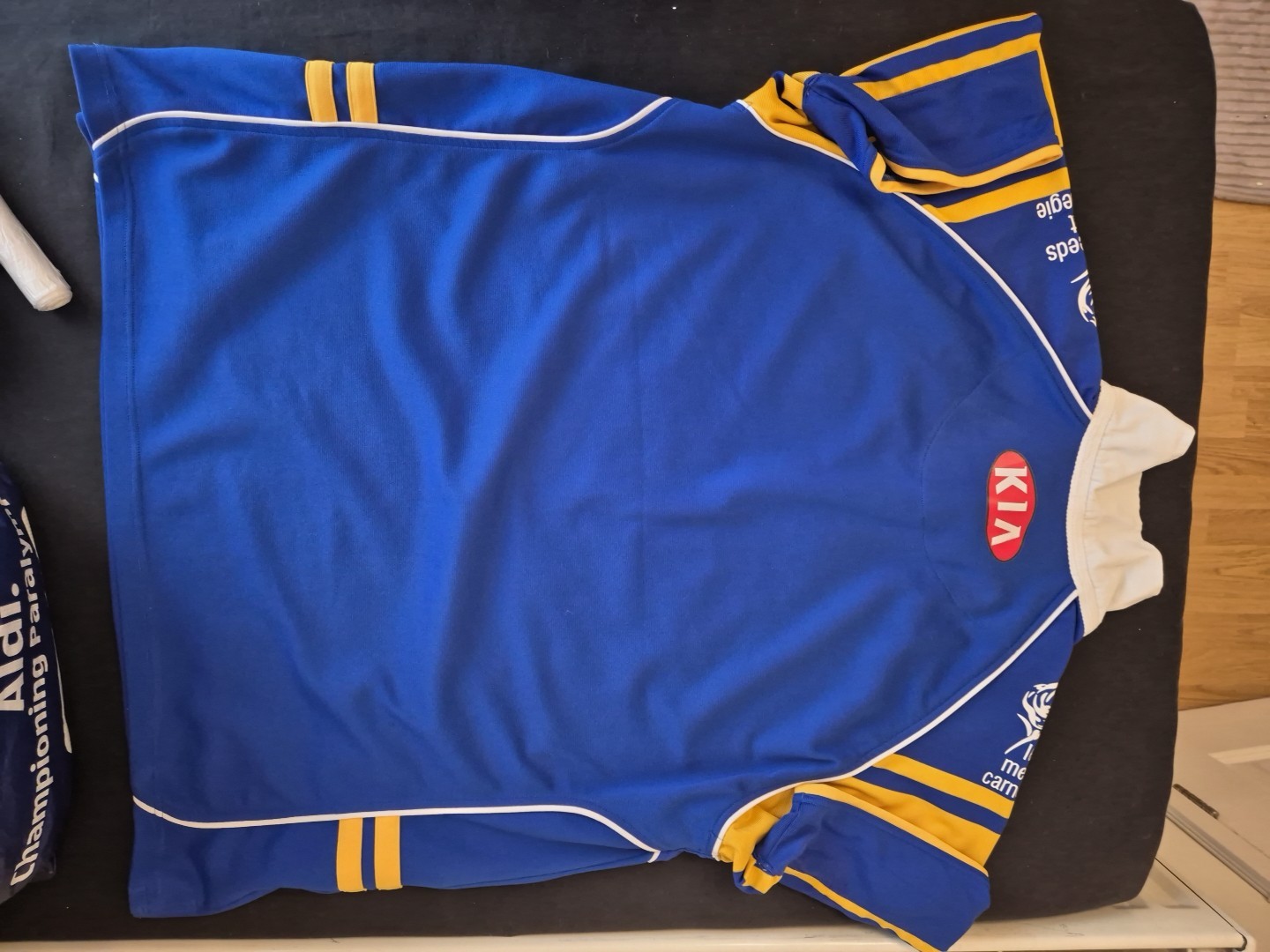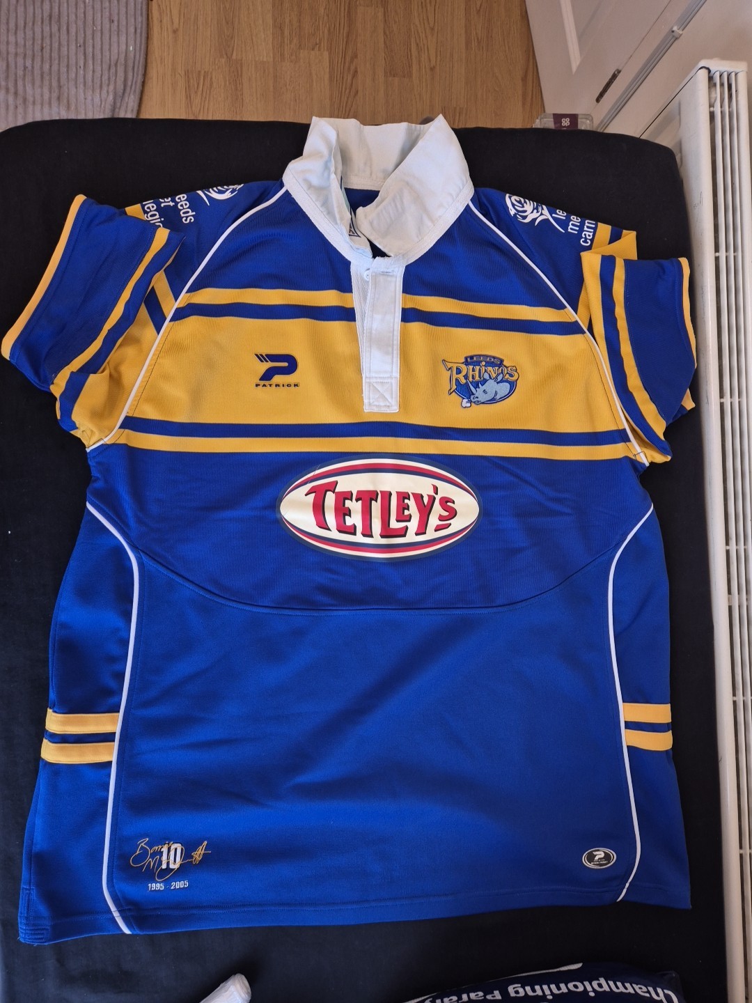 The 4XL men's Leeds Rhinos Rugby League shirt is a special edition Barrie McDermott Testimonial shirt. This shirt is suitable for adults and hails from England's Super League teams. The Leeds Rhinos shirt is a must-have for fans of rugby league, featuring the iconic team logo and colours. Show your support for the Rhinos with this high-quality shirt, perfect for game days or casual wear.