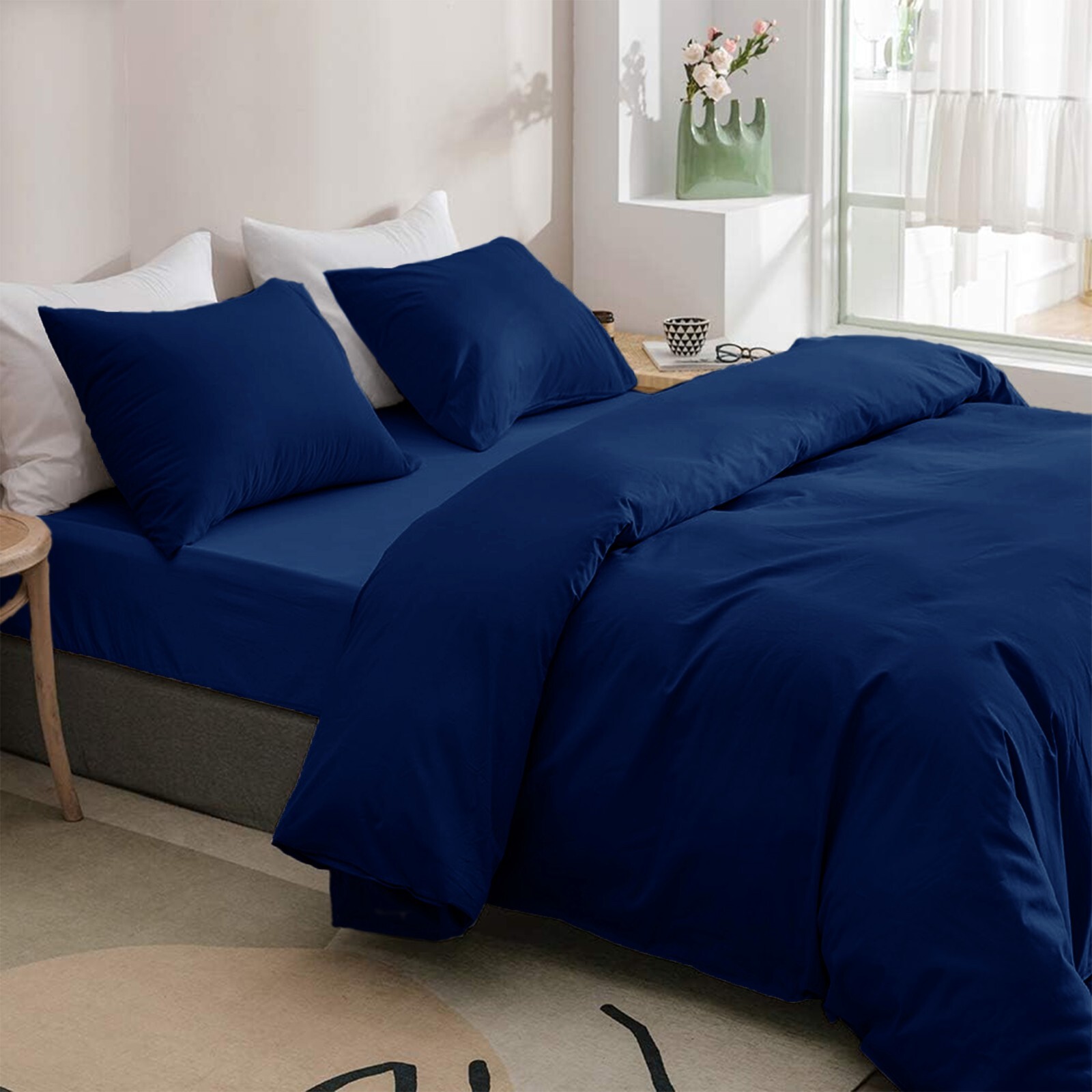 Our Hotel-Quality bedding set is woven from the highest quality microfiber material, brushed on both sides for ultimate softness, smooth and comfort. Lightweight, breathable, and cool to the touch, our luxuriously soft bedding will create a serene sleeping experience, leaving you feeling refreshed and rejuvenated. Machine washable in cold water and tumble dry on low. Fade, stain, shrink, and wrinkle resistant. Our duvet covers are wrinkle-free with no ironing necessary.