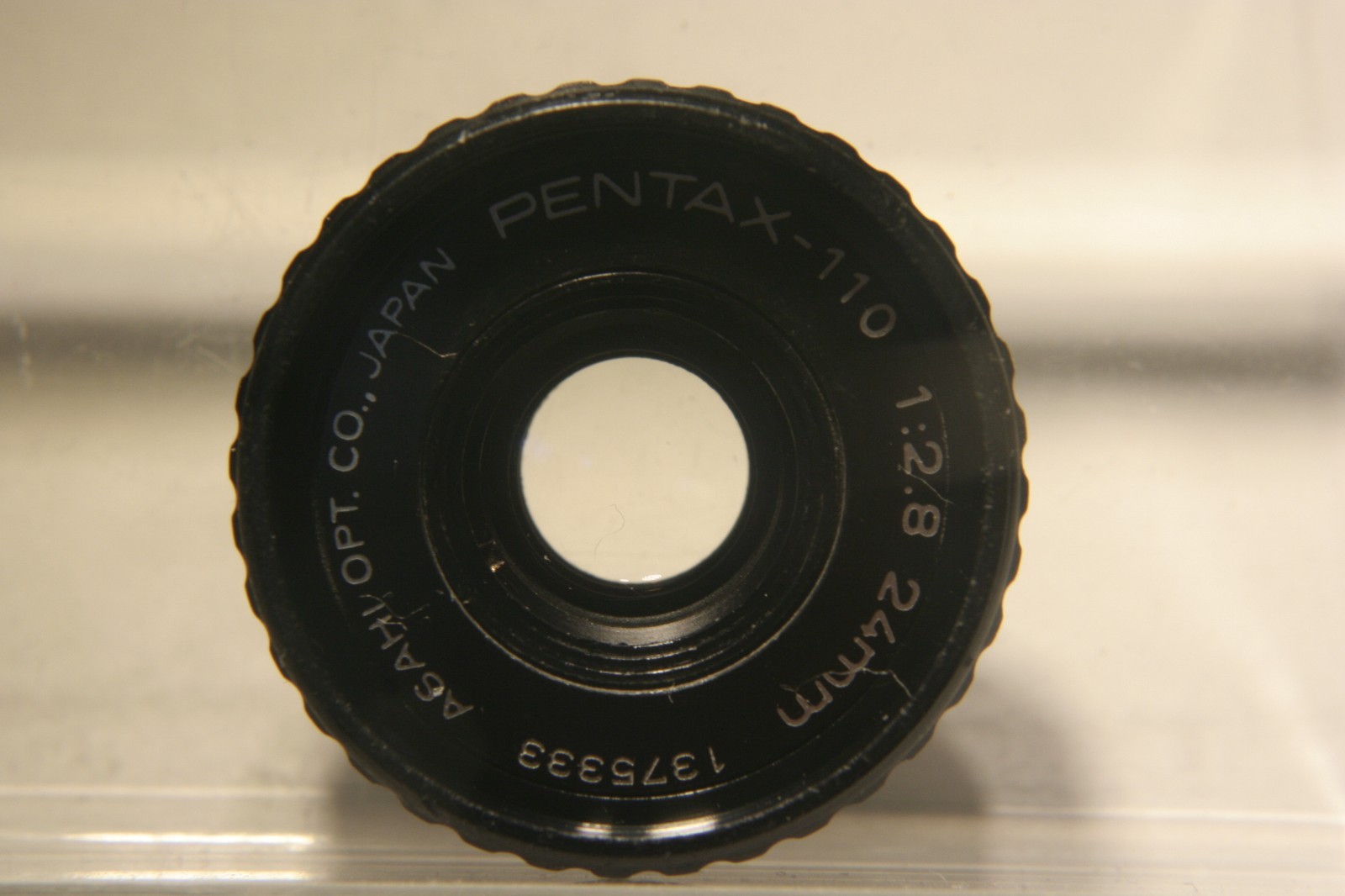 Asahi Pentax-110 24mm f/2.8 Pancake Standard Lens for Pentax Auto 110 Camera in Good used condition. Glass Clean, no scratch, Focus Smooth.