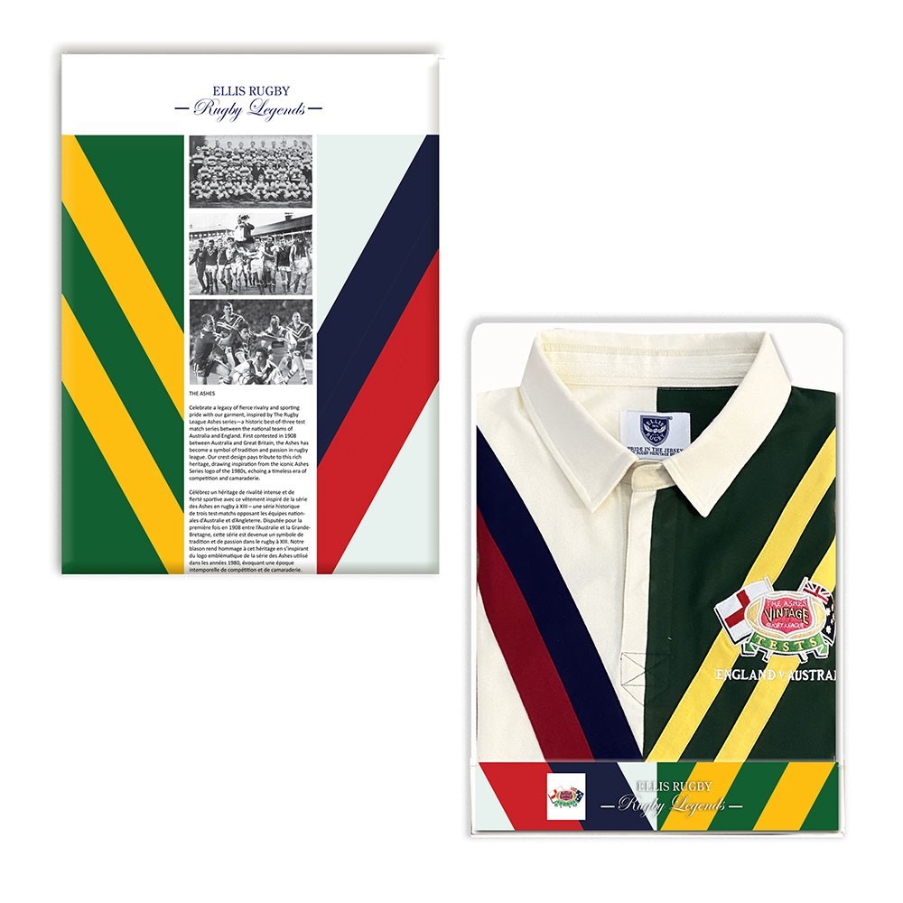The Rugby League Ashes Polo is inspired by one of the most celebrated rivalries in sports history. The design is a collaboration between the charity Rugby League Cares and Ellis Rugby.