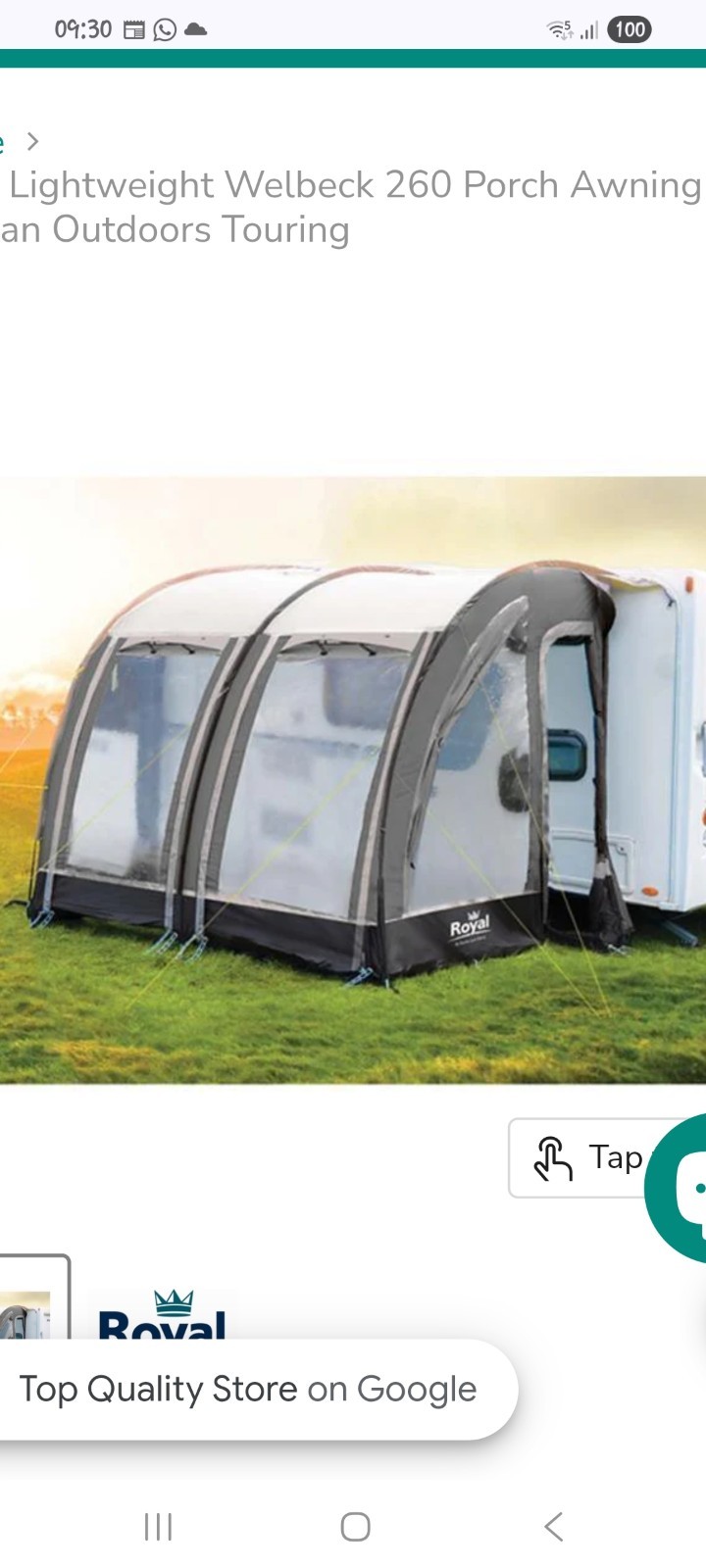 The ROYAL "Welbeck" 260 Poled Lightweight Porch Awning is a spacious and reliable option for caravans. With a polyester fabric material and a static frame design, this blue awning offers both durability and style. The Welbeck 260 model from Royal is sure to provide a comfortable and convenient outdoor living space for any caravan trip. This awning is in excellent condition only been on the caravan for a few days. Viewings welcome.