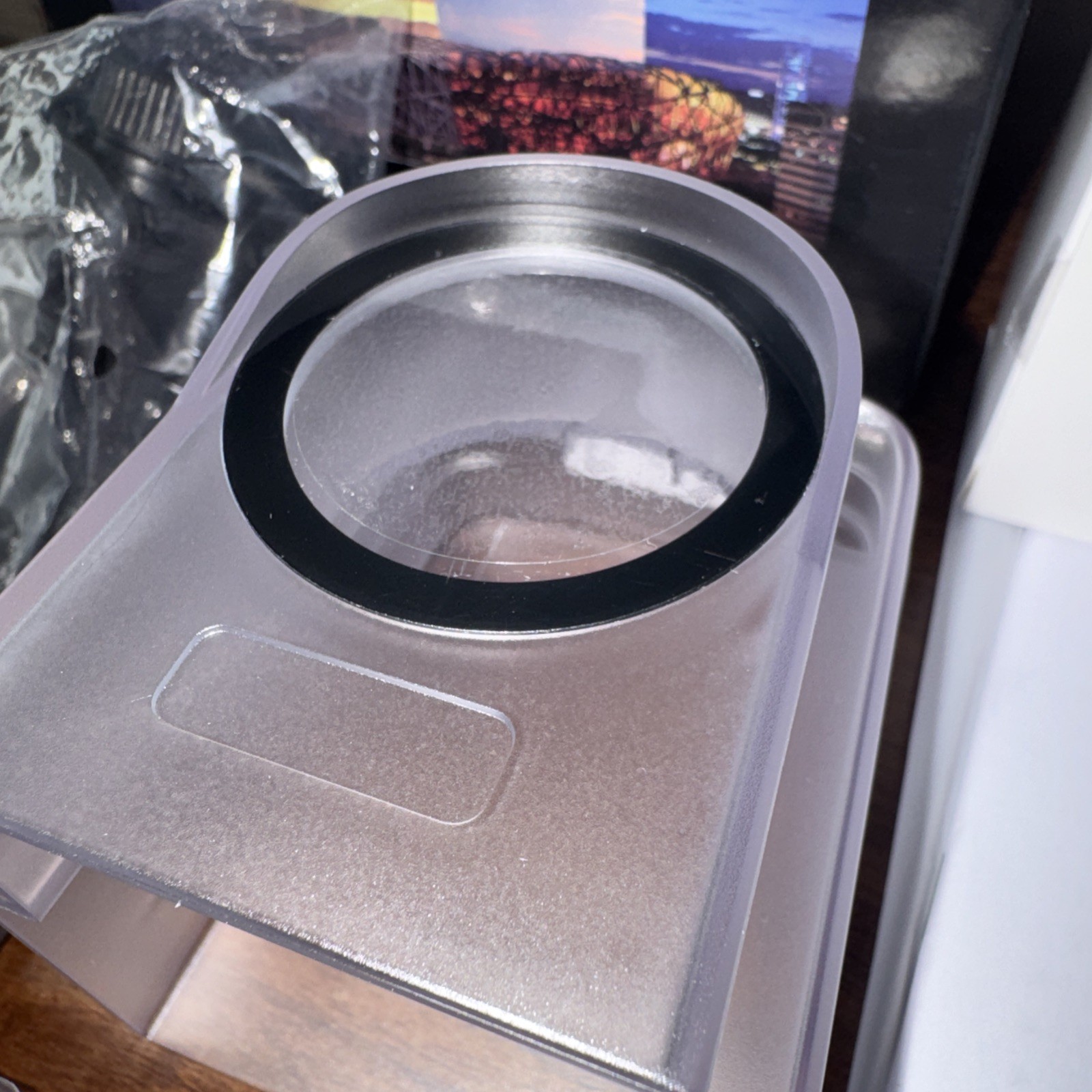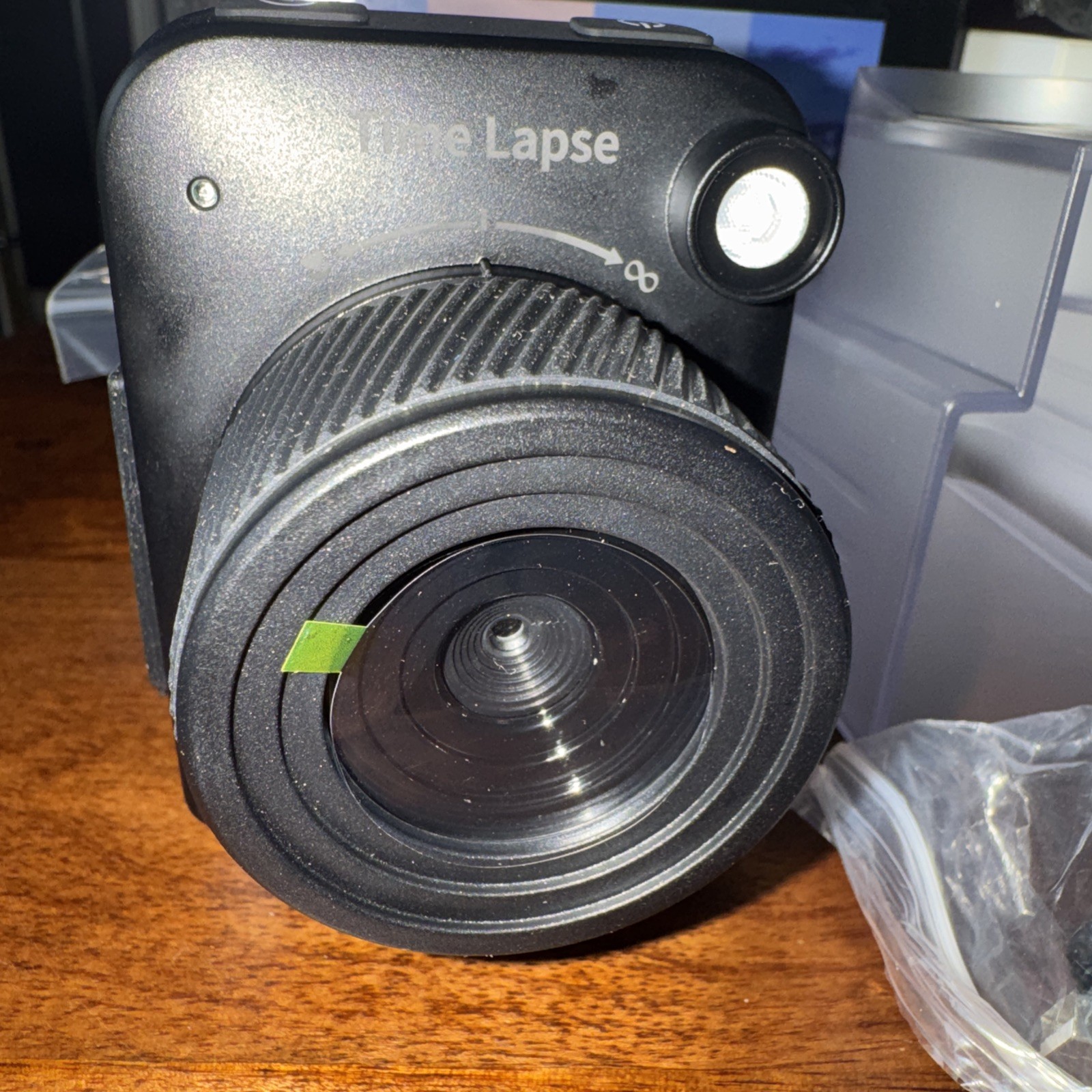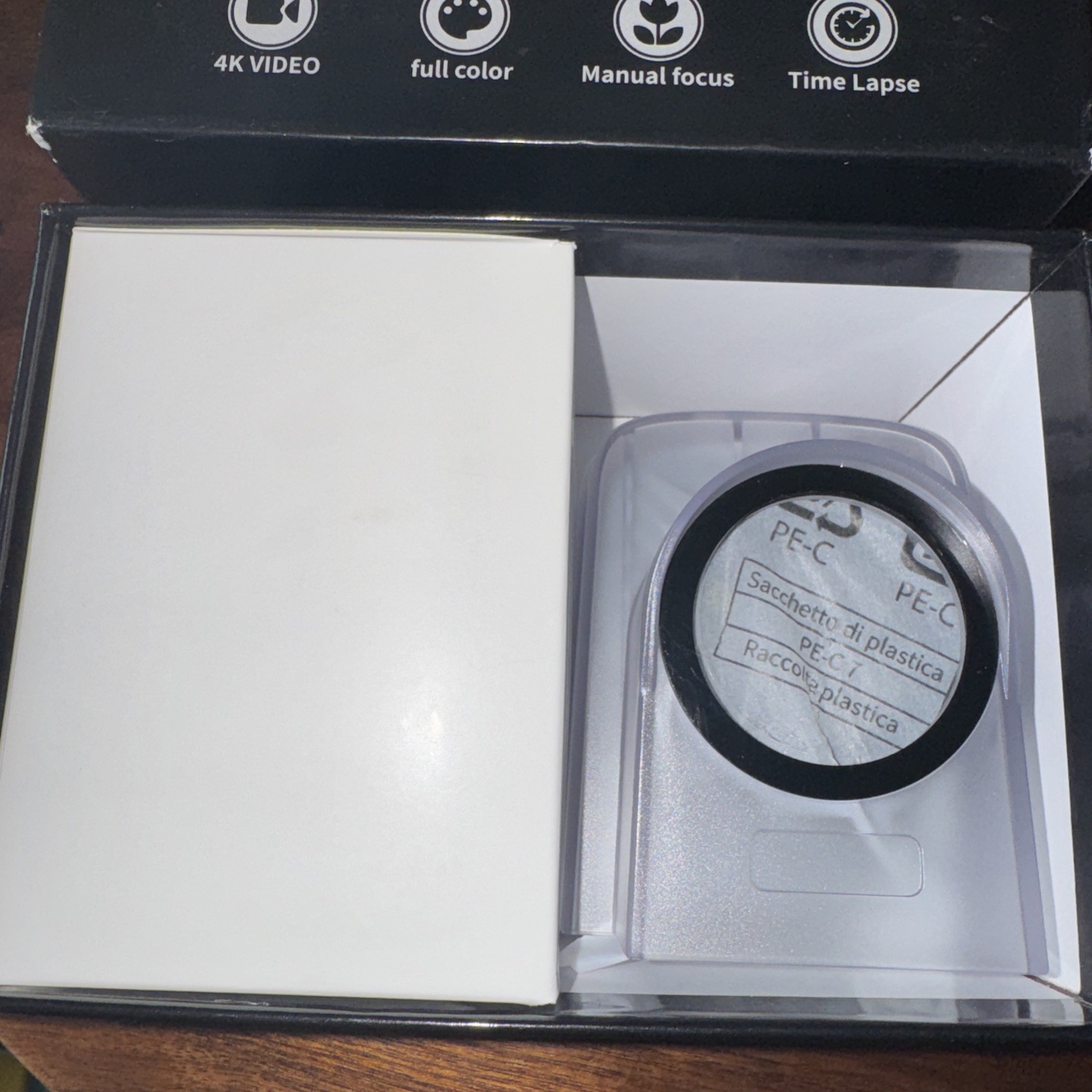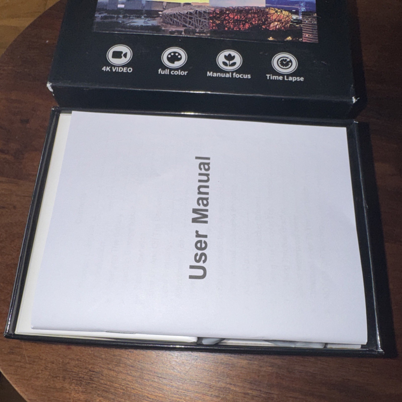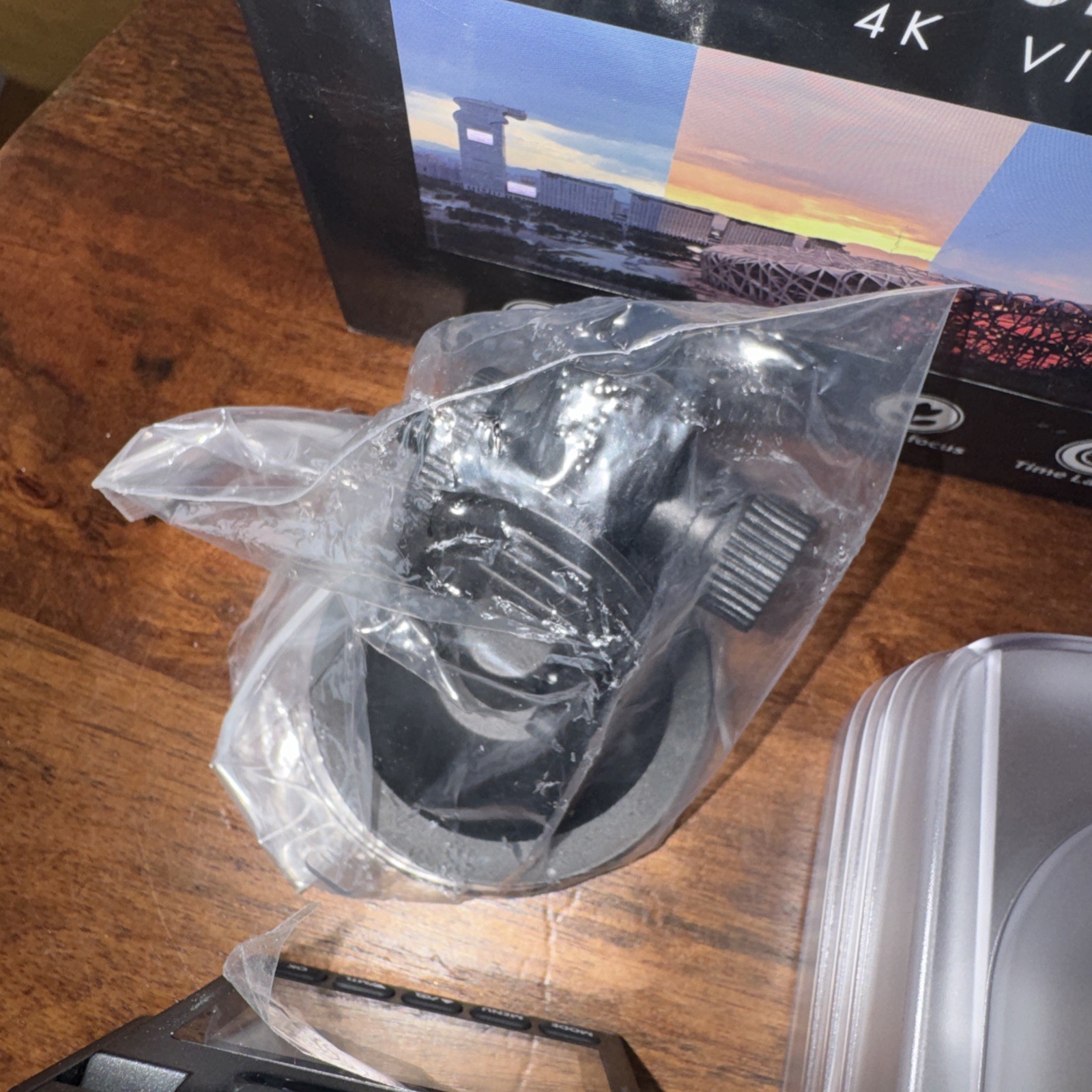 Focketsy 4K 32MP IP66 Waterproof Outdoor Time Lapse Camera. The unit appears unused, with protective films still on the lenses and accessories remaining sealed.