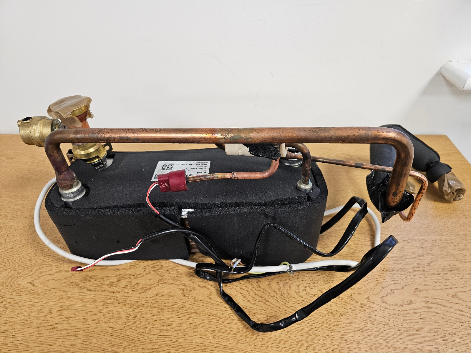 This is a Listing for a New DAIKIN Outdoor Plate Heat Exchanger Complete. Please note that the ancillary items ( Air vent, pressure sensor etc shown in pictures are not included. The Heat Exchanger will be sent out with the water connections as they are and copper extensions on the Refrigerant side...ready for connections to be made.