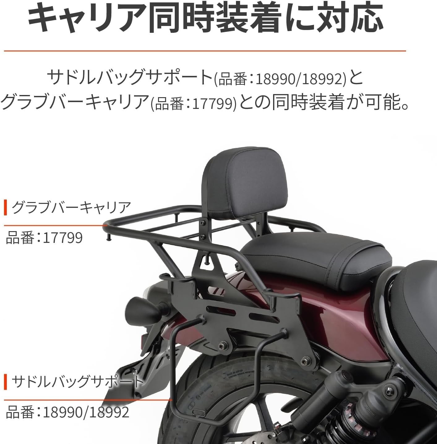 - Compatible with separately sold reversible backrest (part number 17798) and saddlebag supports (part numbers 18990/18992)