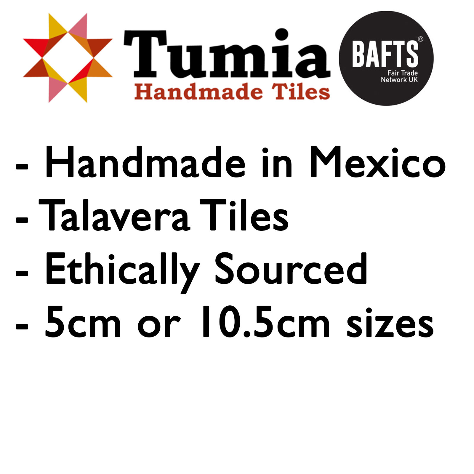 Size & Type: Ceramic tile approx 5 x 5cm As they are handmade, there will be variance from tile to tile. |