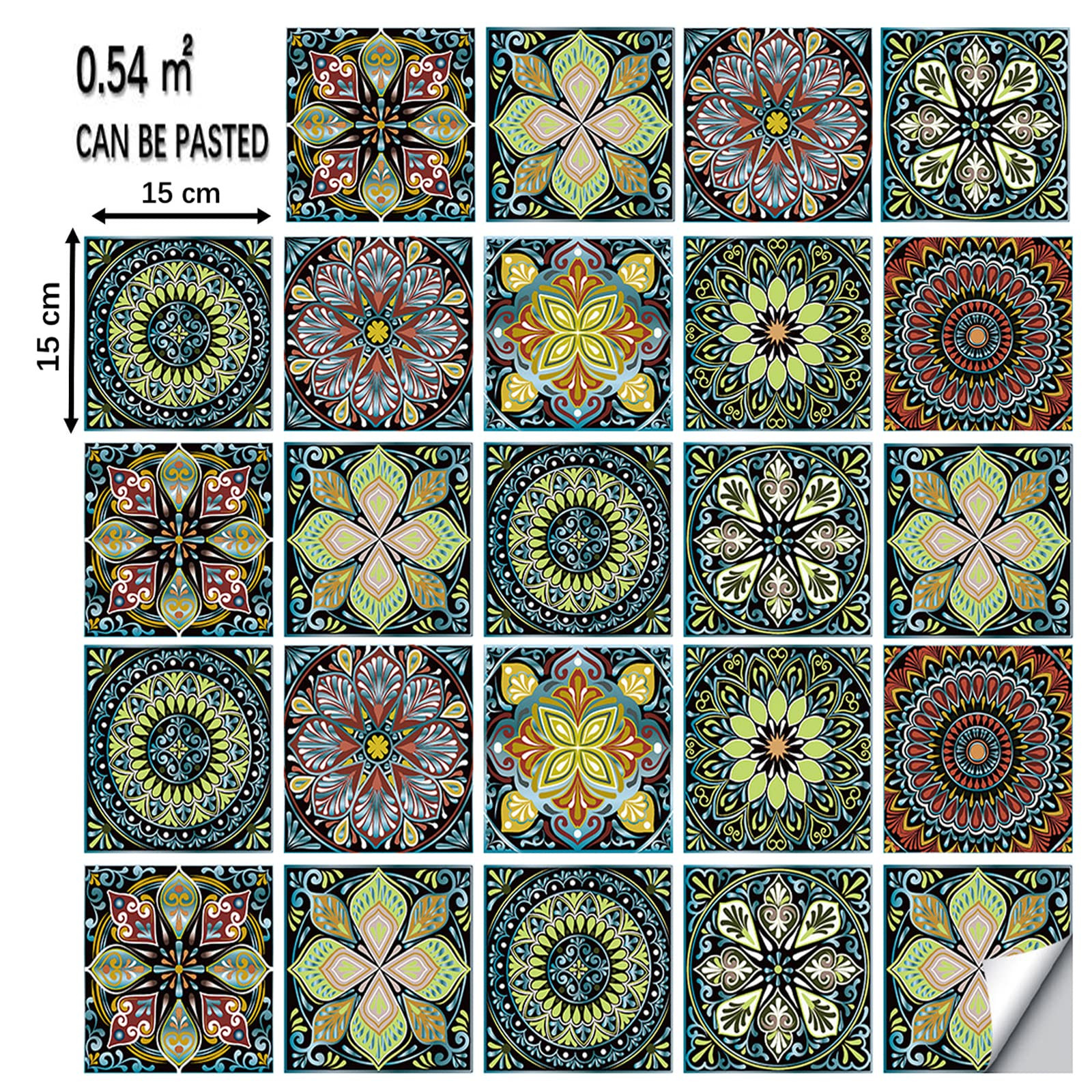 Package Contains: 24 pcs of Tile stickers 15 x 15 cm (6 x 6 inches)24 pcs can coverage area 0.54 square meters.Can be cut to fit border and corner.