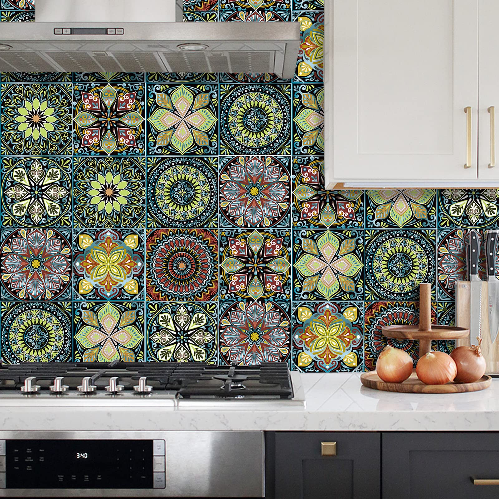 High Quailty Tile Stickers: This Moroccan Tile Stickers Waterproof, Oil-proof and resistant to heat up to 120C.Suitable for smooth and flat surfaces as bathroom, dining room or kitchen tiles,backsplash, doors, furniture, drawers, stairs, cabinets,wall, floor.Heat resistant tile stickers for fireplace surround, hearth and use near cooker hob.