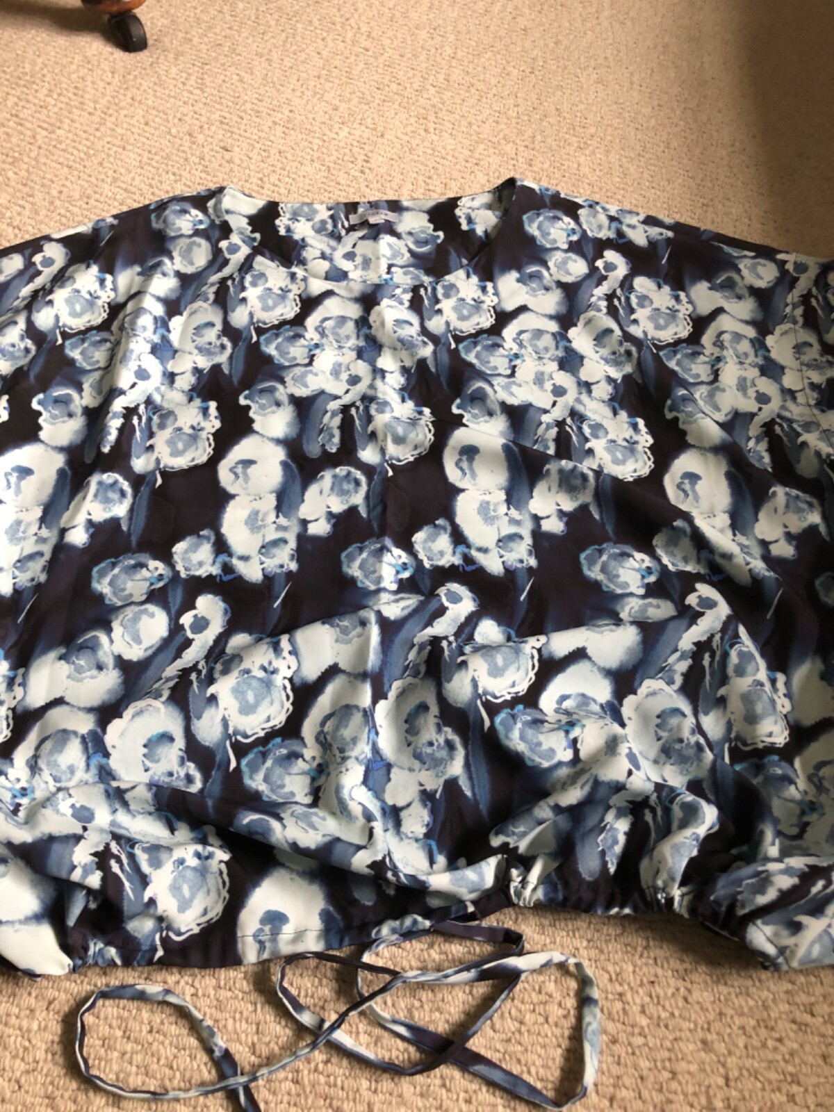 Lose fit with drawstring waist. No sleeves but because of fit they are beyond shoulder so like capped