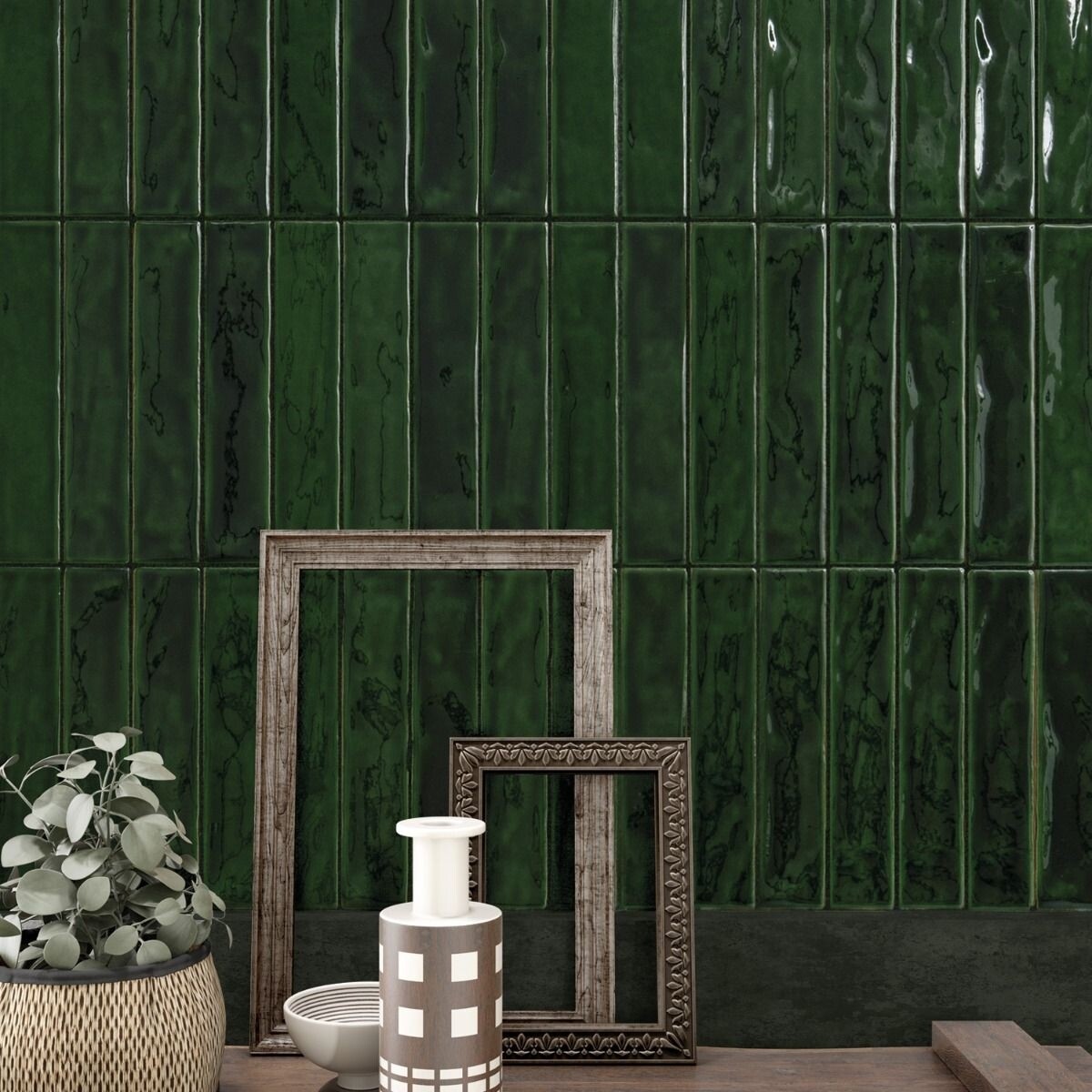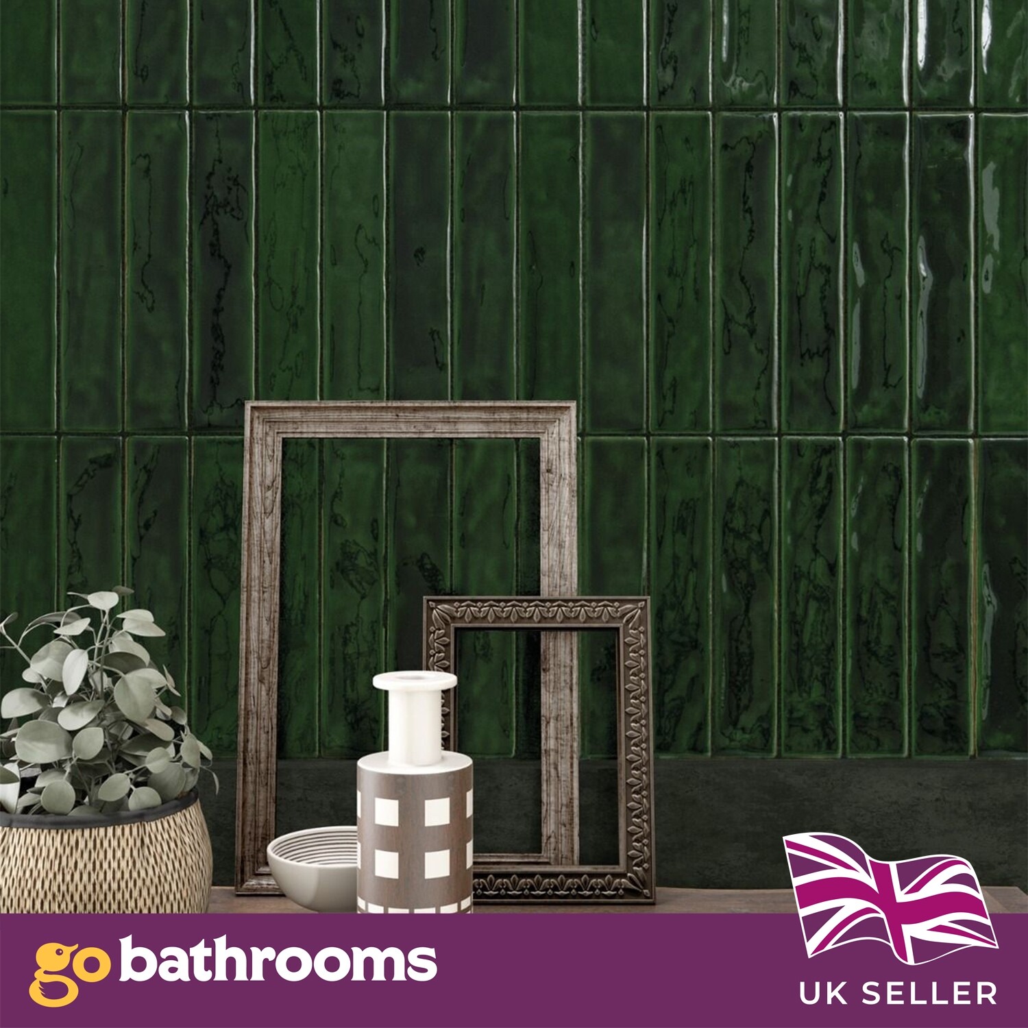 Aiora Green Gloss Ceramic Rectangle Kitchen Bathroom Brick Wall Tile 50x250mm