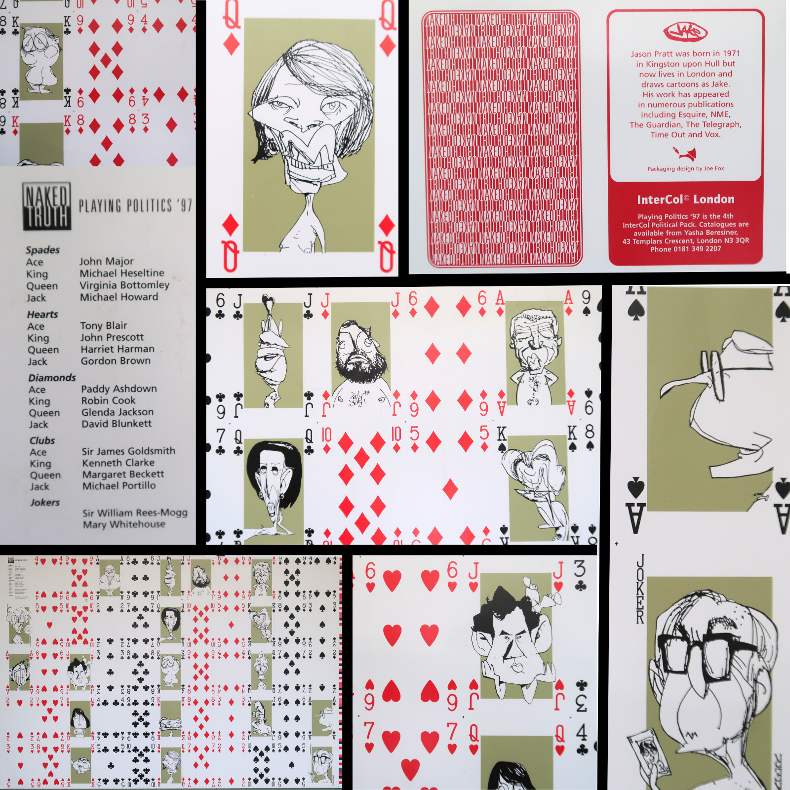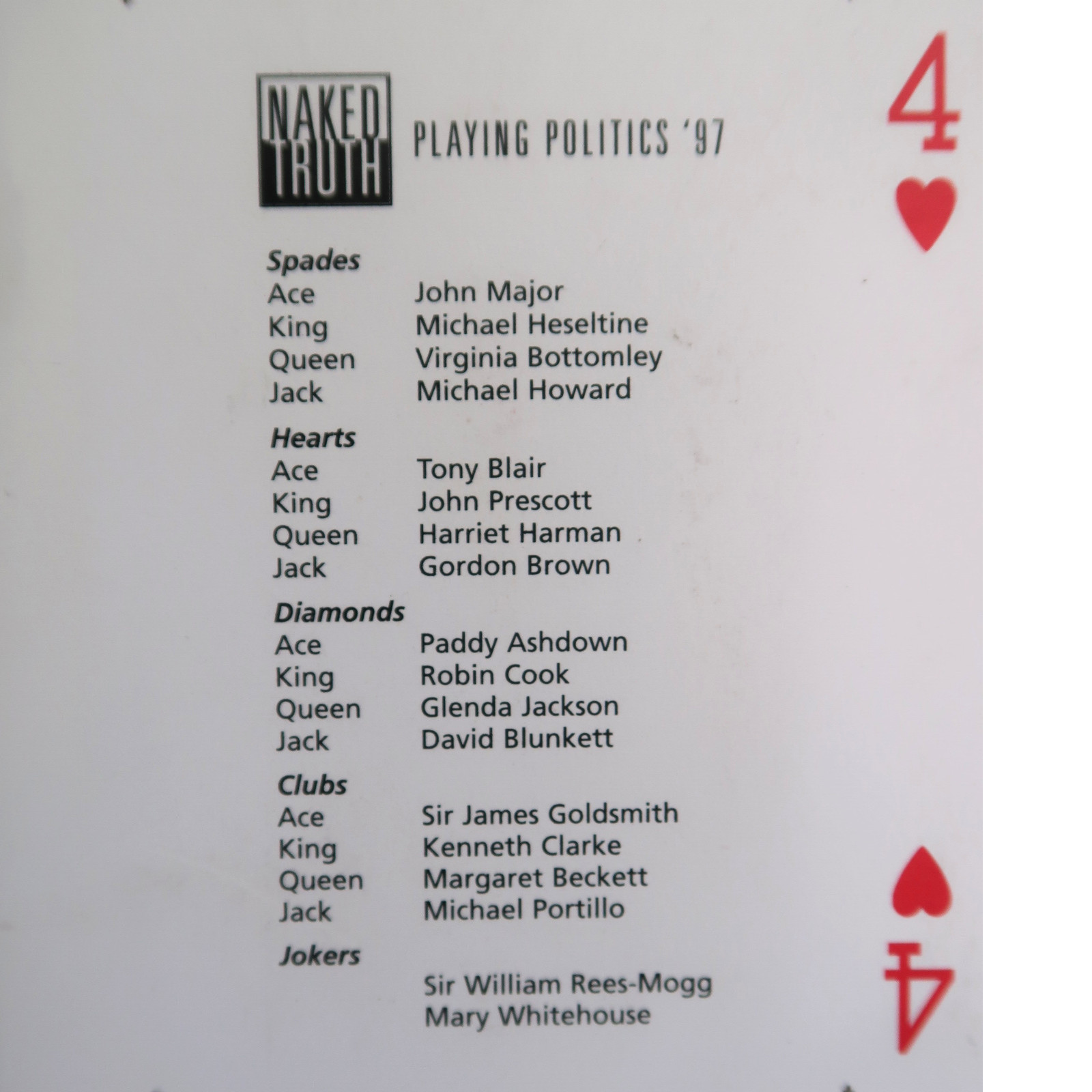 A unique collectable card sheet from the United Kingdom, this deck features caricatures of some of the major political figures in 1997.
