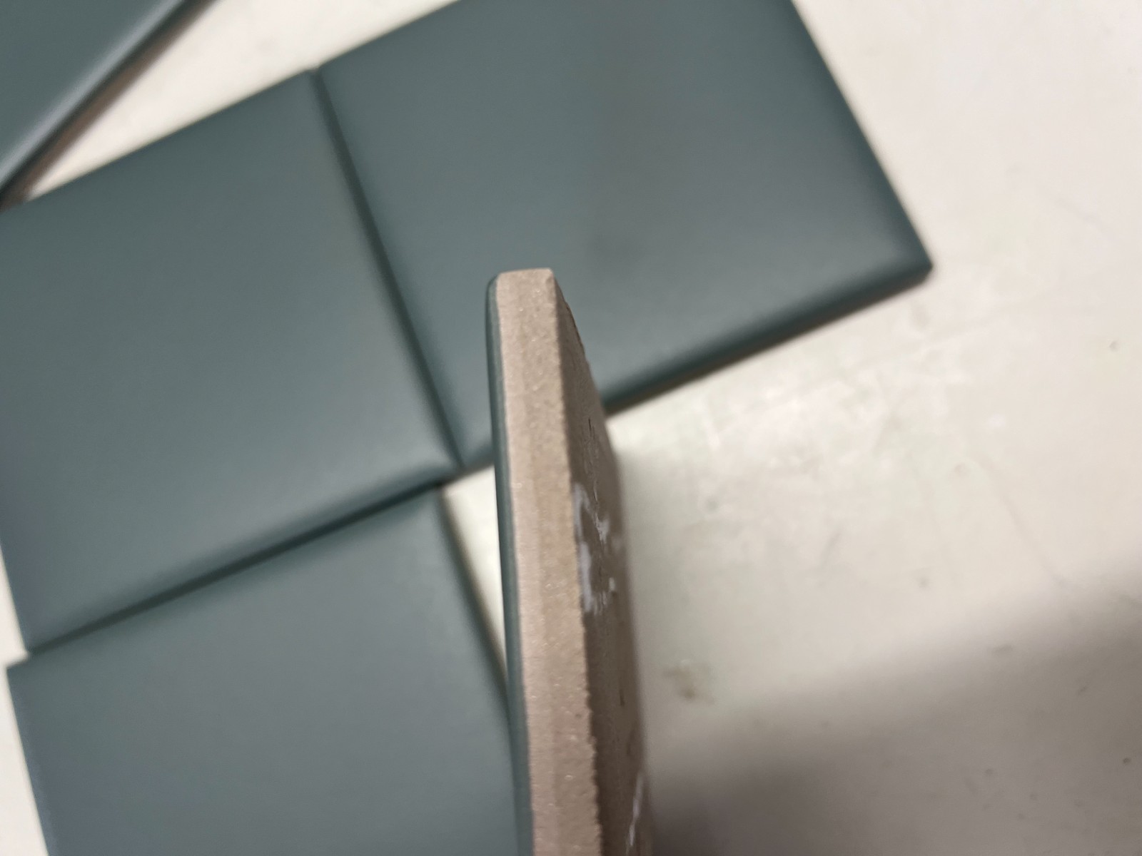 Left over from an interior designer project these gorgeous tiles are in a muted green tone and made from glazed porcelain, suitable for floor or walls.