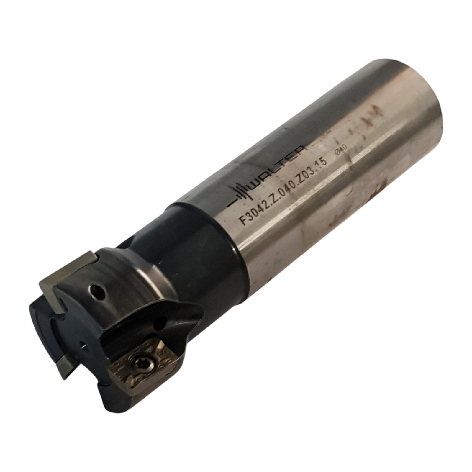 Indexable end mill designed to accept APKT 16 size inserts. This cutter is supplied complete with three inserts installed in WQM35 grade. Features internal coolant supply and a flatted 32mm shank