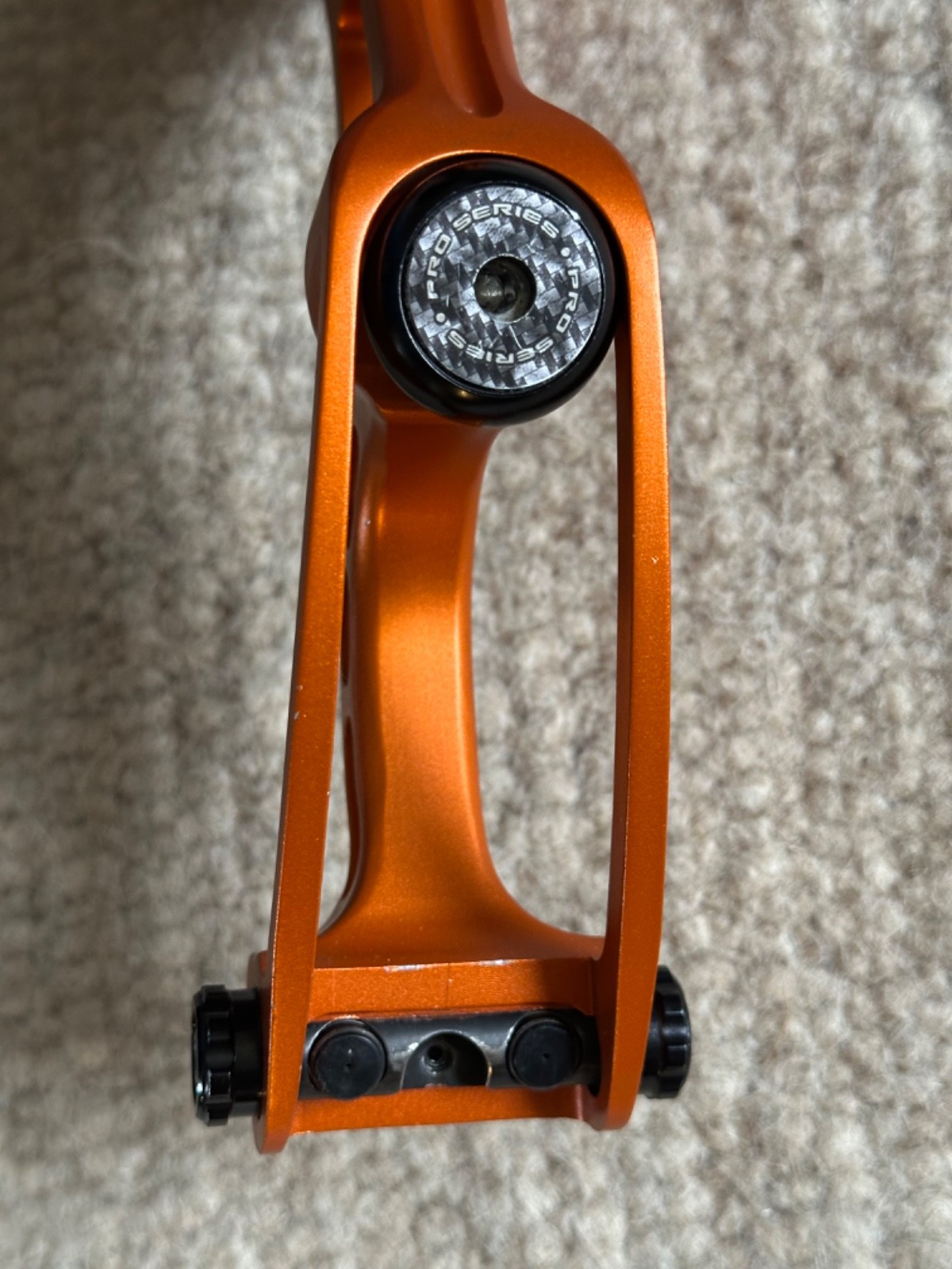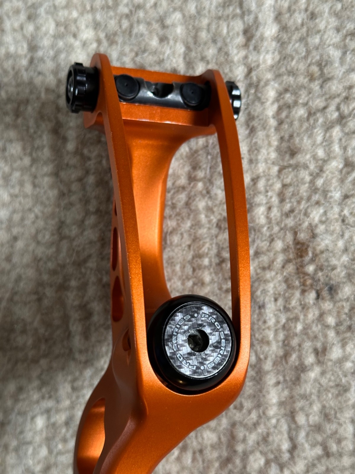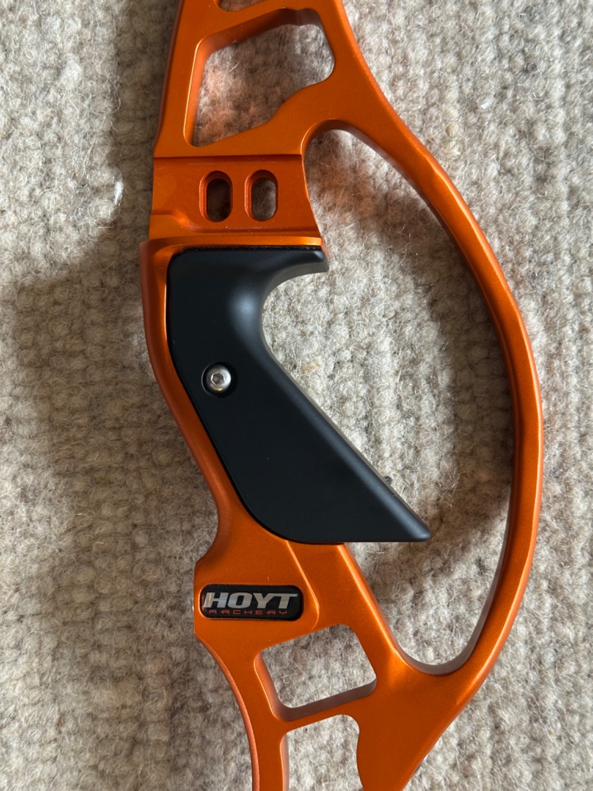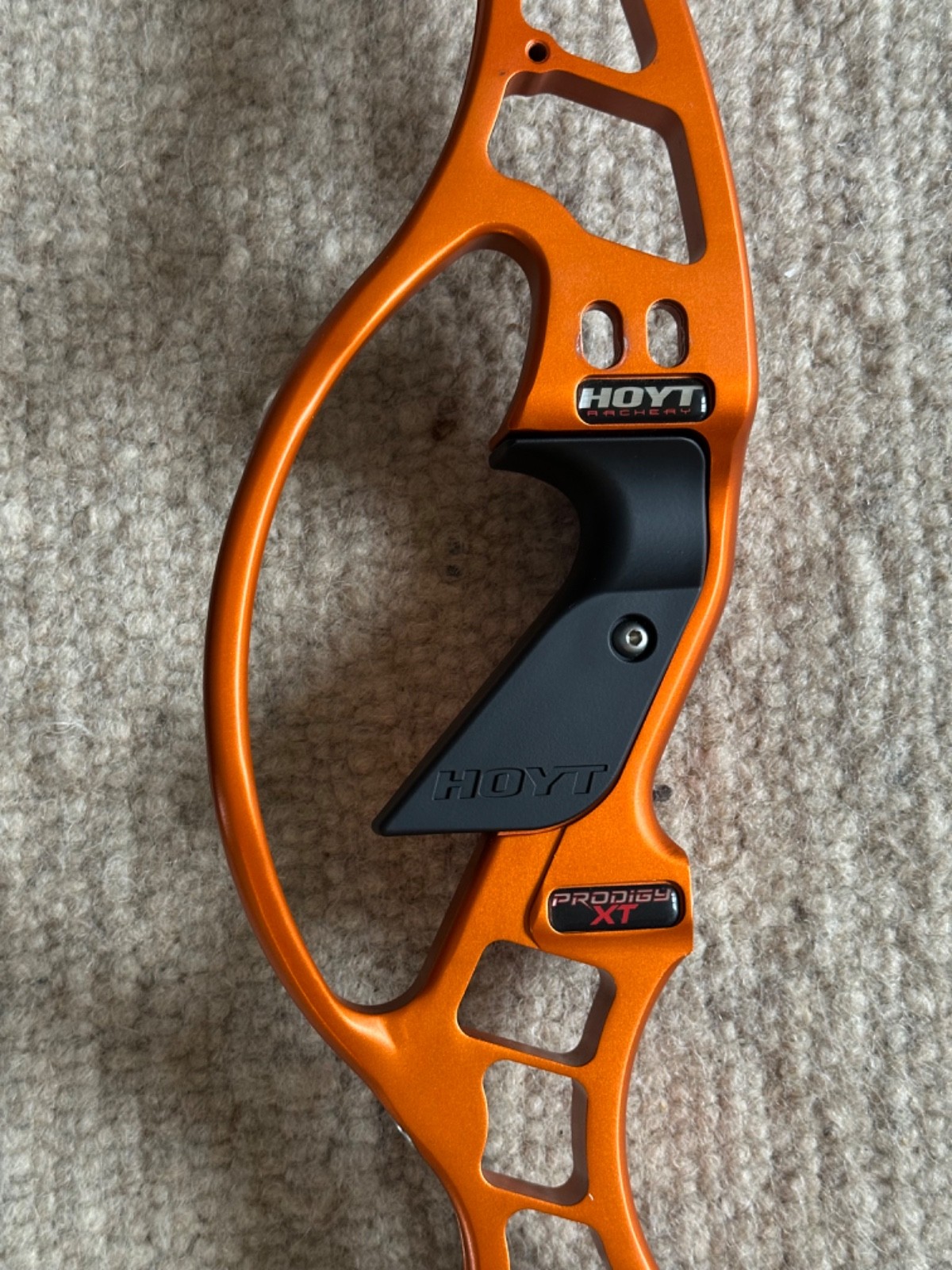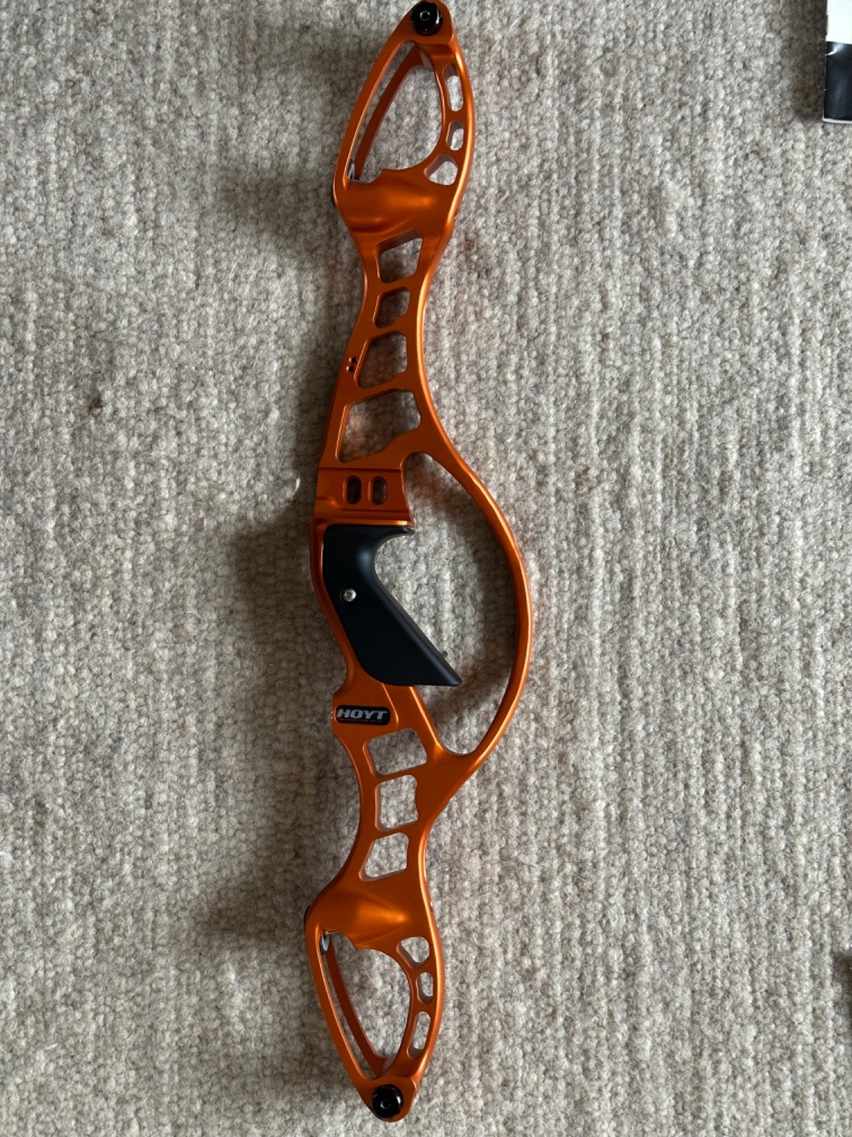 Riser - Hoyt Prodigy XT, Formula Limb fitting, satin orange, upgraded Hoyt grip, high, med and low clicker plates included (one with Shibuya rest installed), original owners manual and padded sleeve. Excellent condition