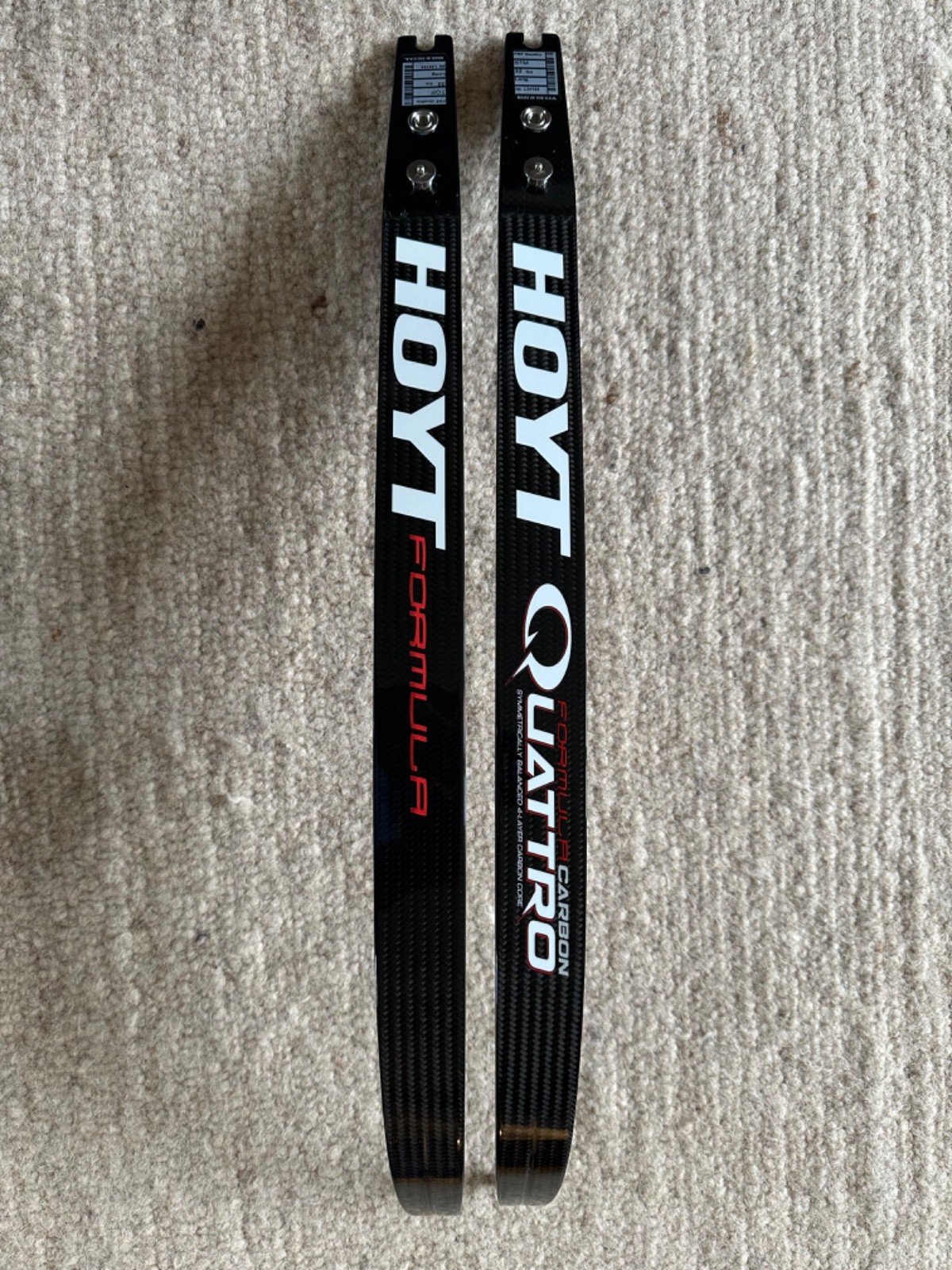 Limbs - Hoyt Formula Quattro Carbon, Long, 32 LBS, original padded sleeves included. Excellent condition with no marks or cracks to the carbon or lacquer