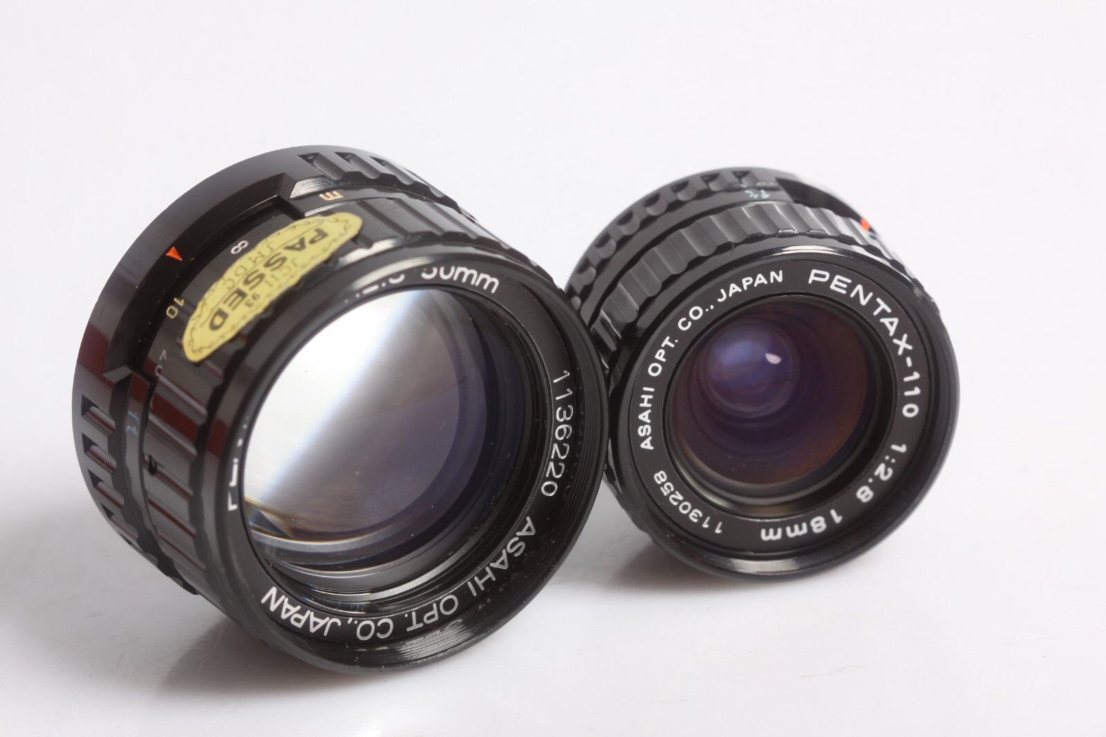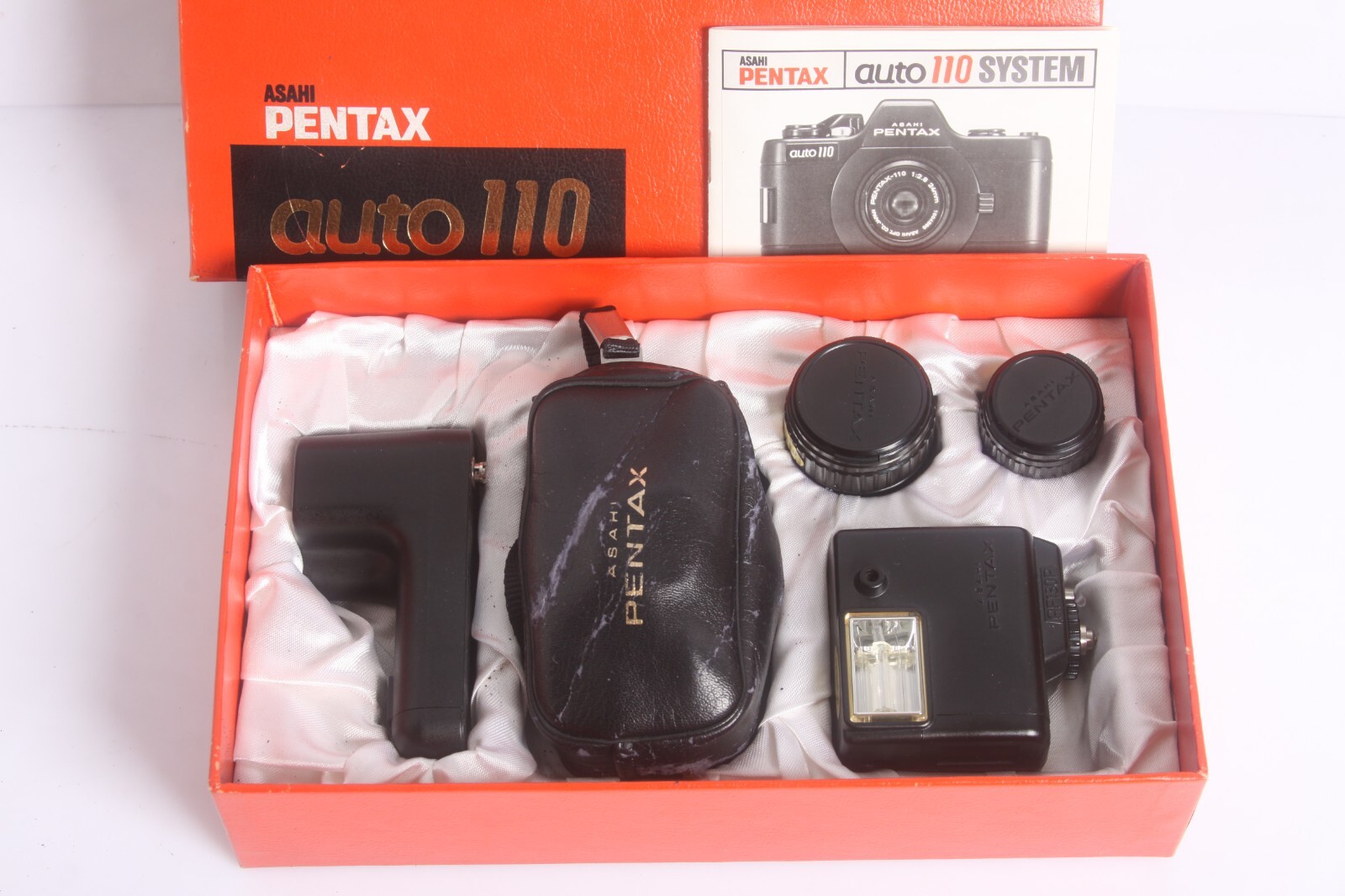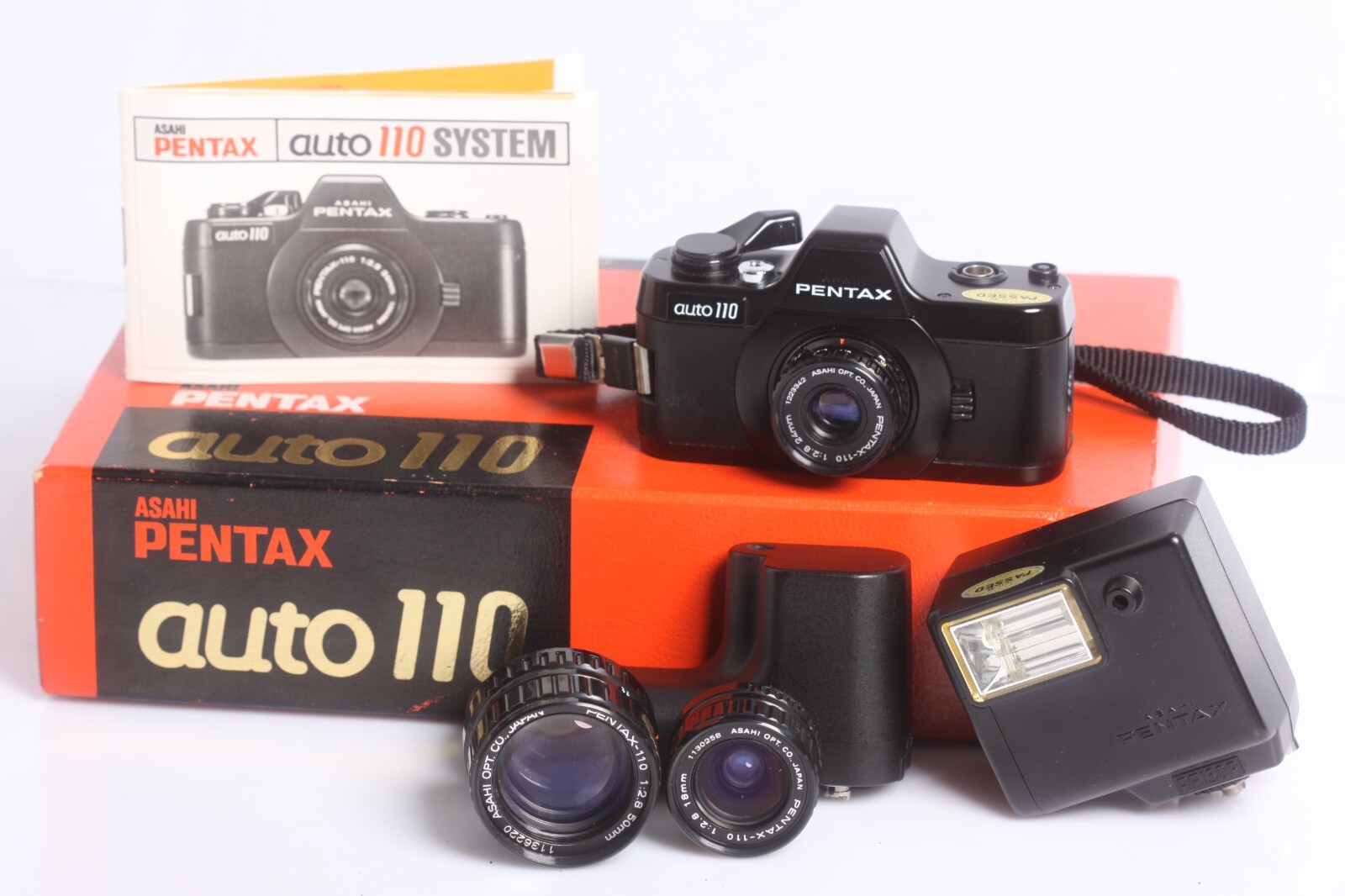 Pentax Asahi Auto 110 System Set 2,8/18 + 2,8/24 + 2,8/50 + Blitz