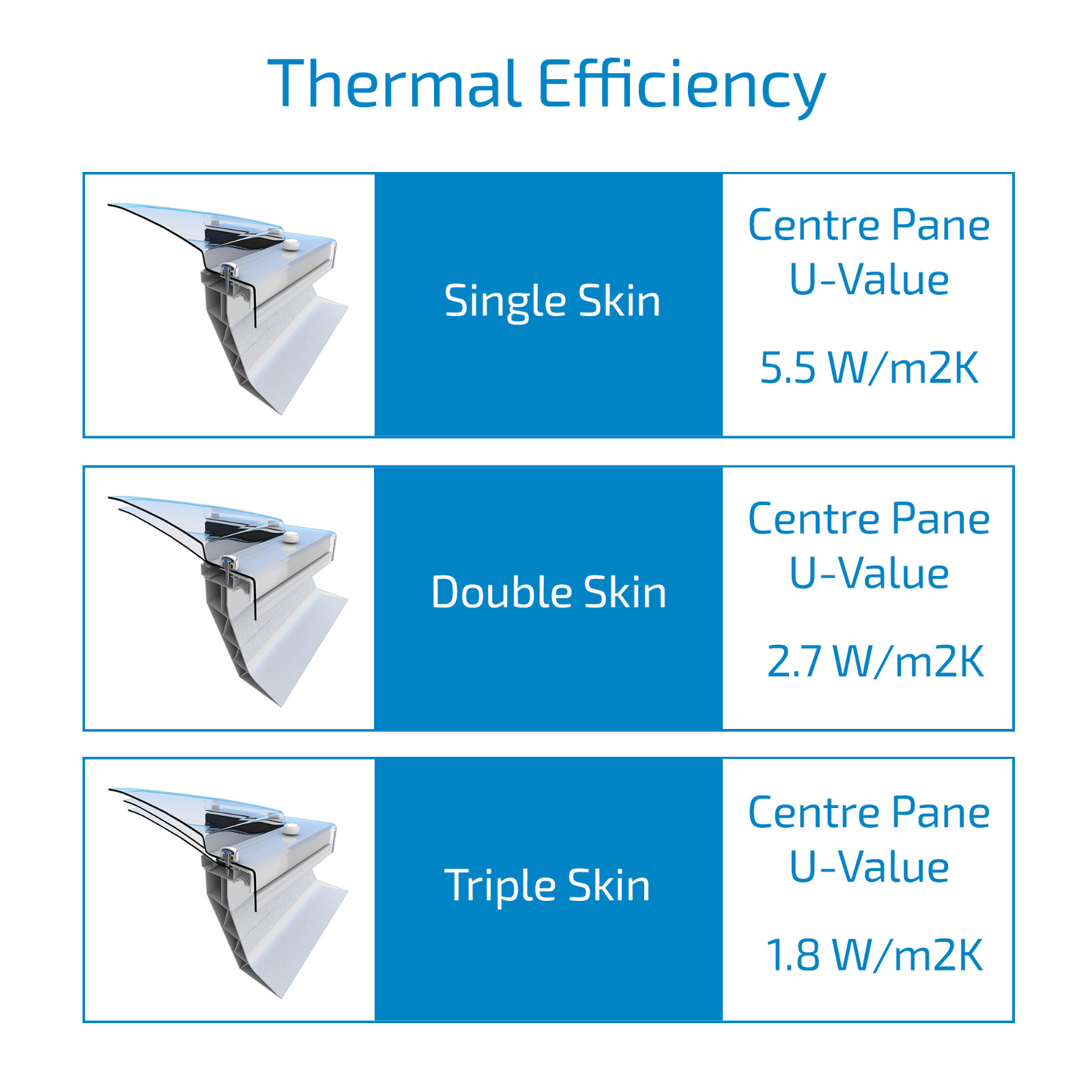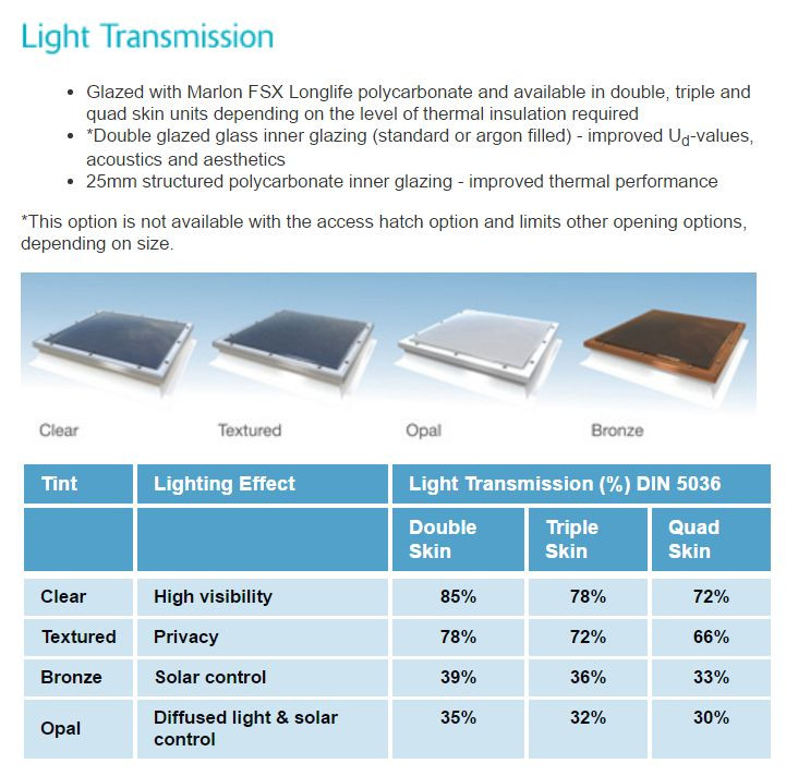 The Mardome dome rooflights are also a curved dome ensuring adequate water run off. The triple-skin construction of our Mardome Trade rooflights results in a center pane U-value of 1.8 W/m²K.