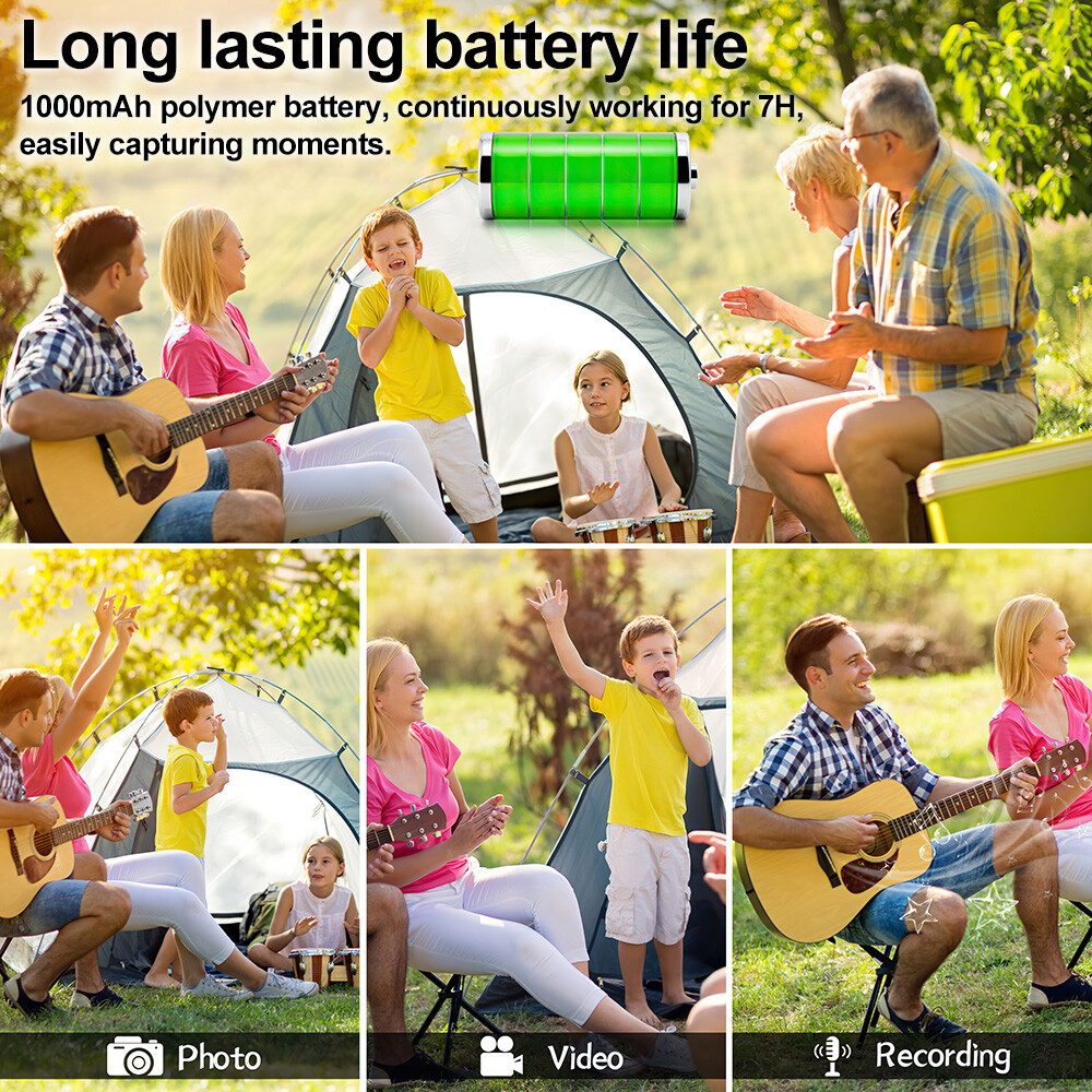 ➧ Equipped with a 1000mAh rechargeable battery, it can provide up to 8 hours of recording time.