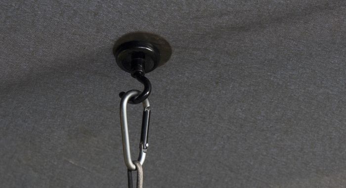 High strength magnetic hook to attach head torches, phones and other accessories to the inside of bivvies or umbrellas. Easily attached and removed anywhere for session convenience – even strong enough to hang wet clothing up and out the way.
