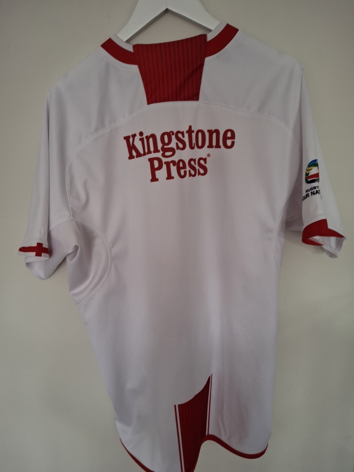 The England Rugby League Shirt is a white XL size shirt designed for adult men who support the England national rugby team. Made specifically for rugby enthusiasts, this shirt is perfect for showing off your team spirit during games or casual wear. Suitable for fans of rugby league, this shirt is a must-have item for any England supporter.