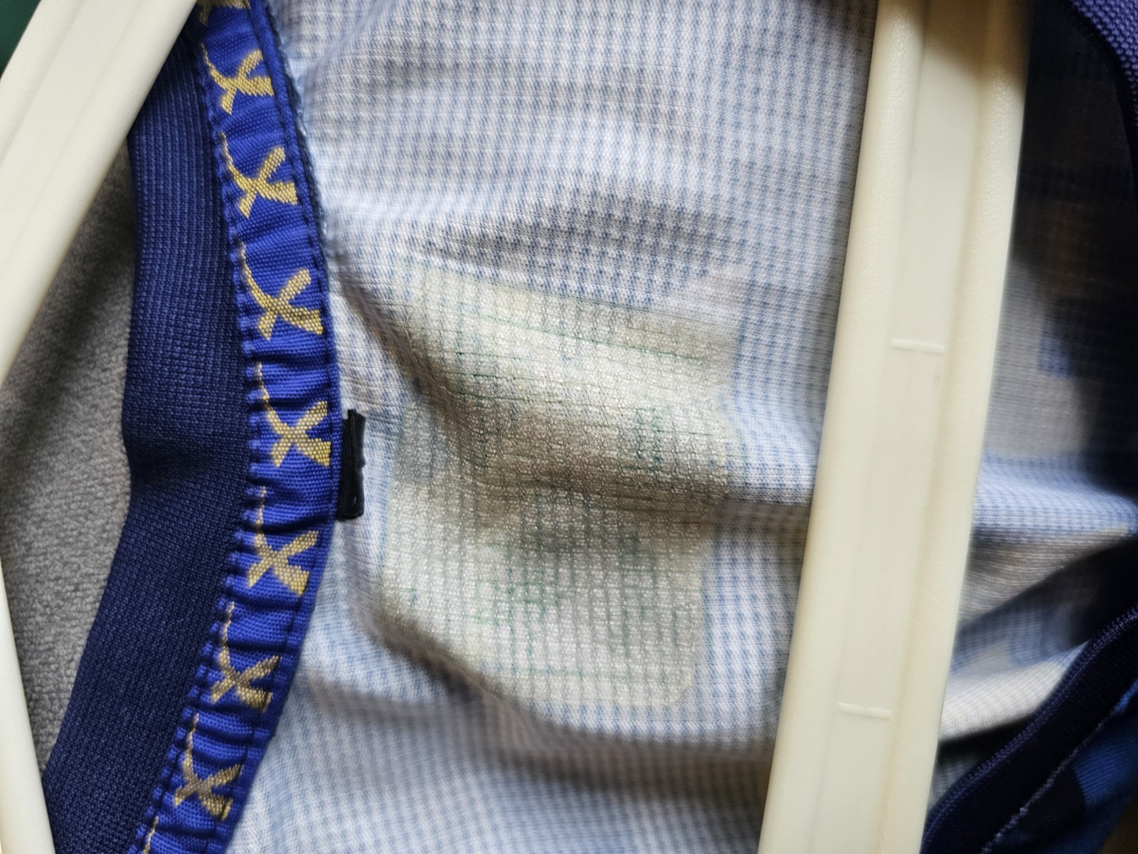 Good condition overall. Light signs of wear with a few small loose threads near the hem (see close-up photo). No holes, stains or fading.