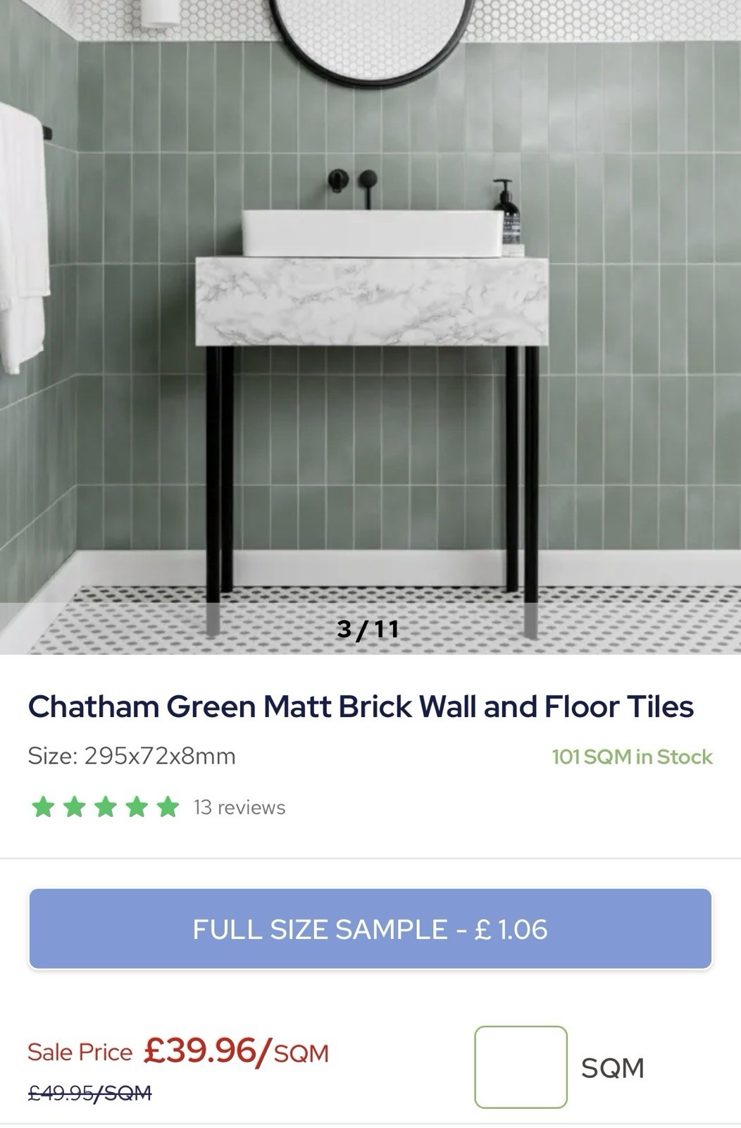 The Chatham Green Matt Brick Wall and Floor Tiles are crafted from high-quality ceramic material, with a thickness of 8mm. These tiles are suitable for both interior wall and floor installations, making them versatile for various rooms such as the kitchen, bathroom, living room, and hallway. The matt finish adds a modern and stylish touch to any space, while the green colour scheme brings a calming and earthy feel to your home decor. With a tile size of 295x72x8mm, these tiles offer a sleek and elegant look for your home improvement projects.