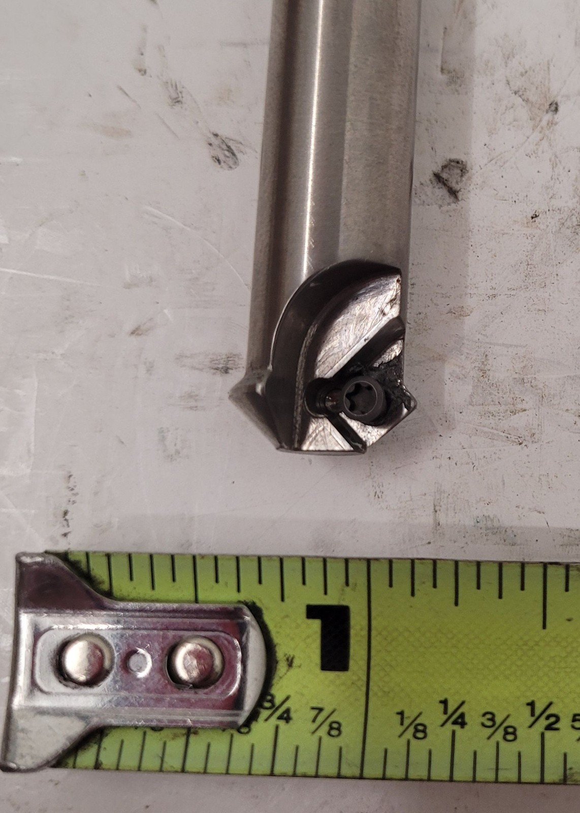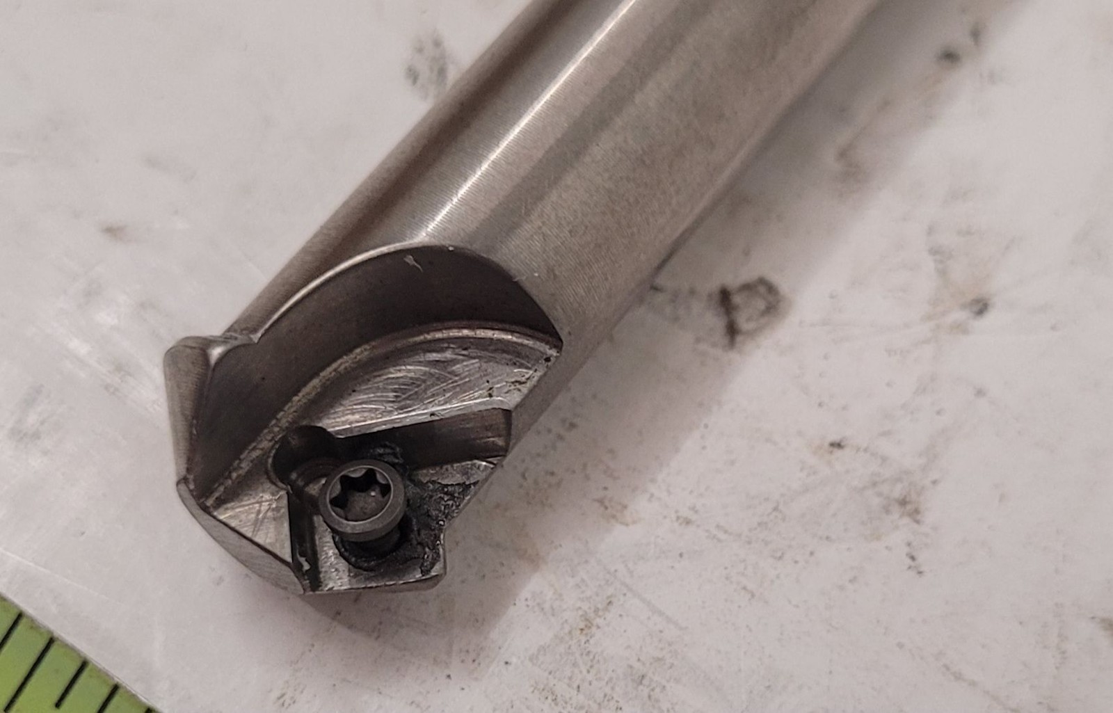 Walter Indexable Mill Cutter F2232-5569032 Cut Diameter: .472” Cut Max Diameter: .799” Depth of Cut Max: .138” Protruding/Usable Length: 1.575” OAL: 6.3” Tool Cutting Edge Angle: 45 Right Hand