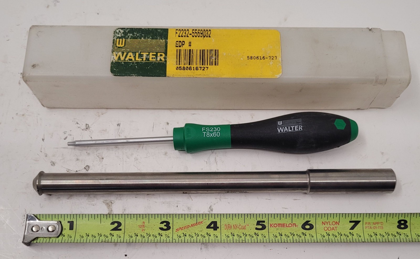 Walter Indexable Mill Cutter F2232-5569032 by WALTER. Used tooling with .472” cut diameter and .799” max, 1.575” usable length, 6.3” OAL, 45° cutting edge angle for right-hand operation. Ideal for precision-focused applications.