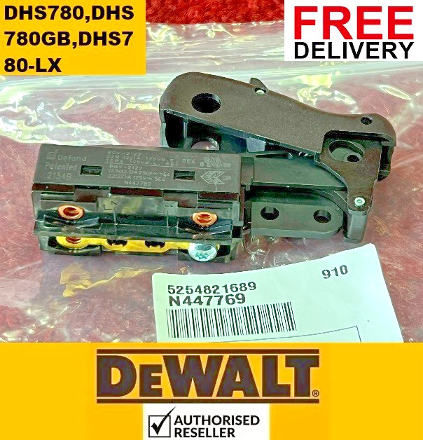 GENUINE Dewalt SWITCH FOR DHS780,DHS780GB,DHS780-LX 54v Mitre Saw TYPE 20/21 Please Note: All delivery postage, Royal Mail tracked (normally between £3.99 and £8.99), is included in the price. Free delivery.