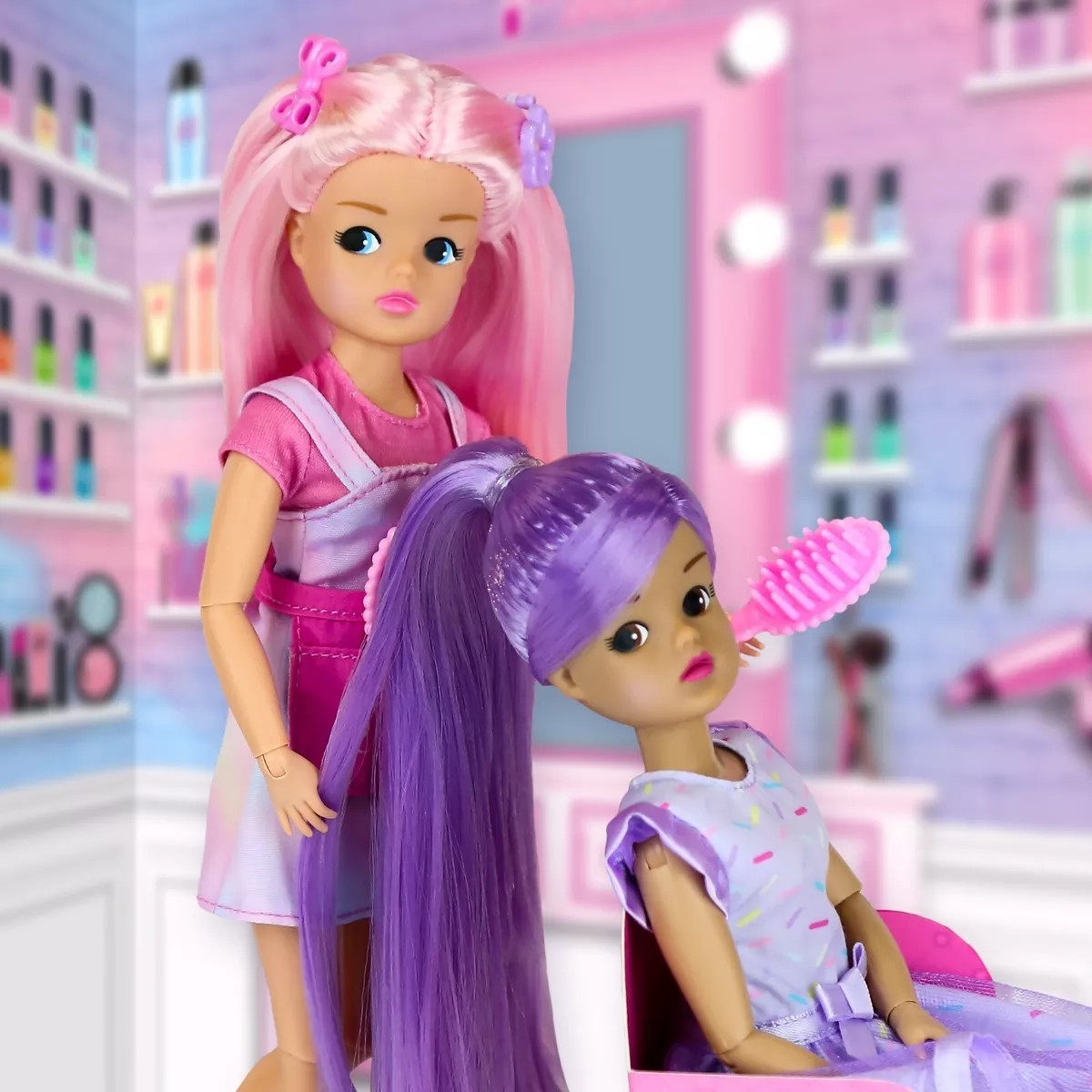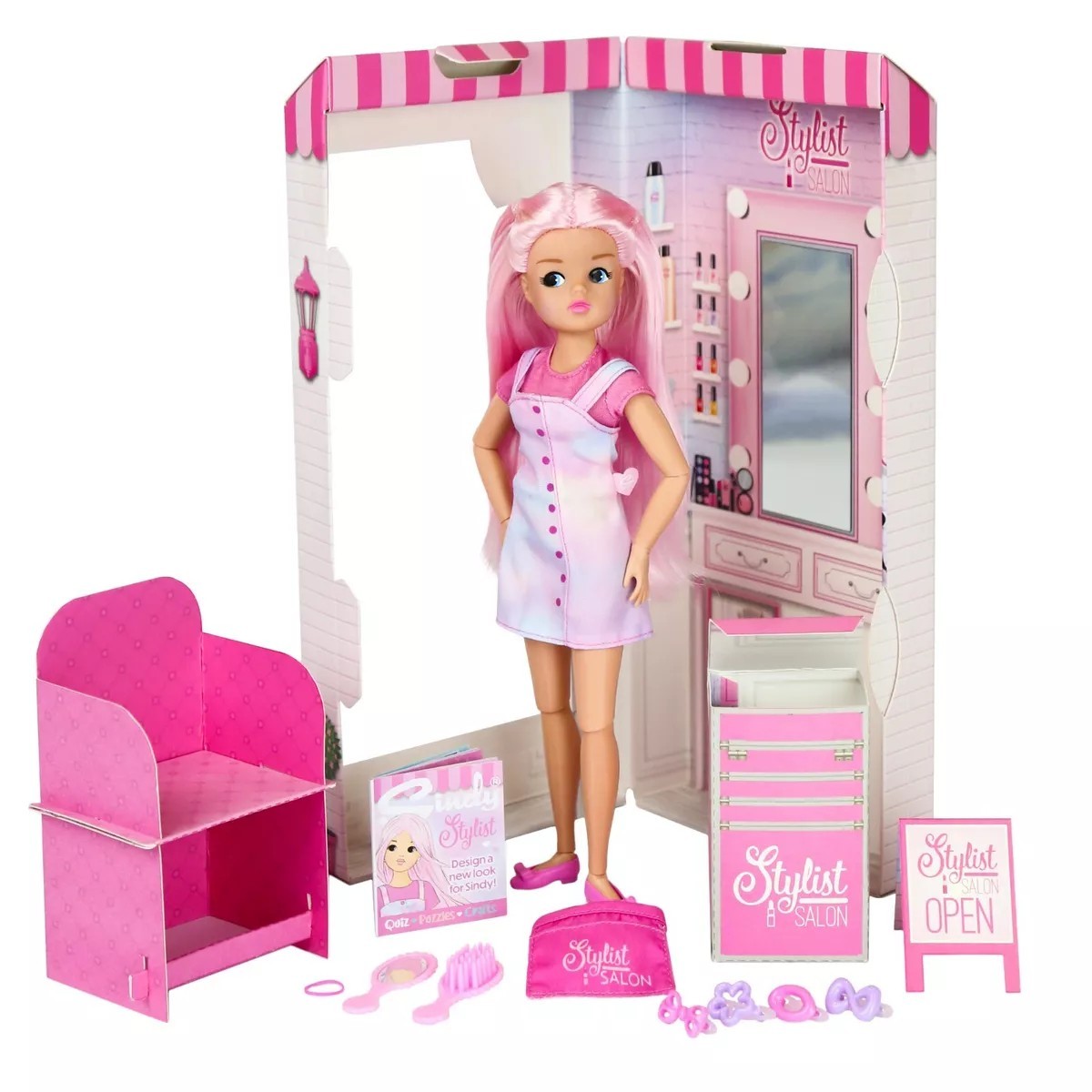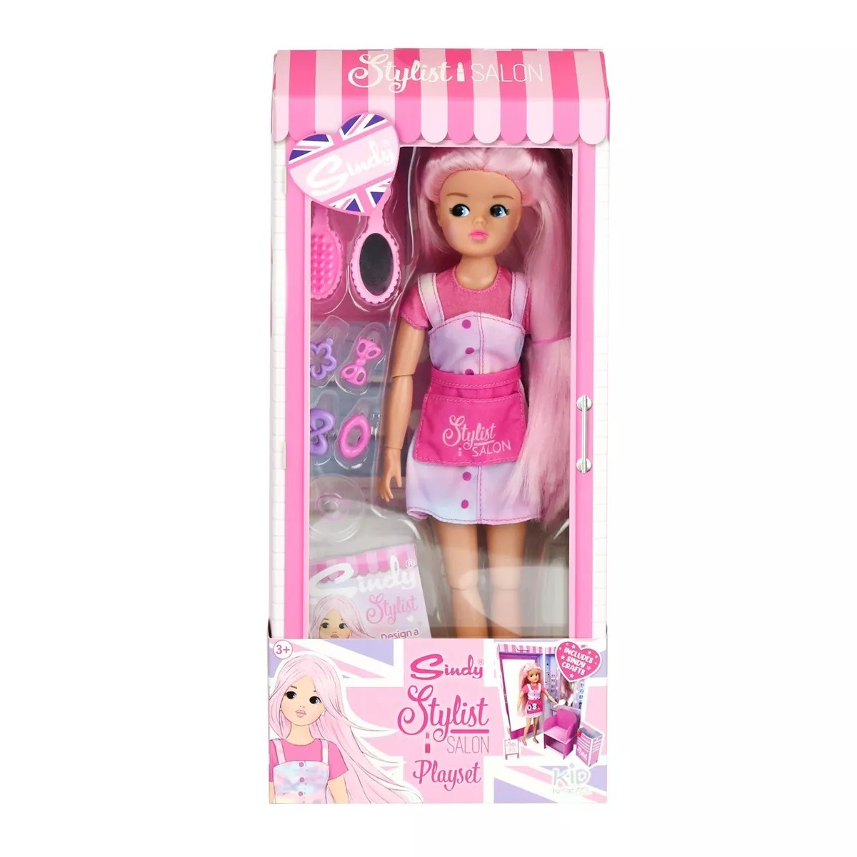 Salon Stylist Sindy is the perfect playset for any doll lover who just loves making new friends. She wears a bright pink tee, pastel tie dyed dress, bright pink ballet shoes and a pink accessories belt. She comes with super silky long pastel pink hair which she loves to try new styles with.