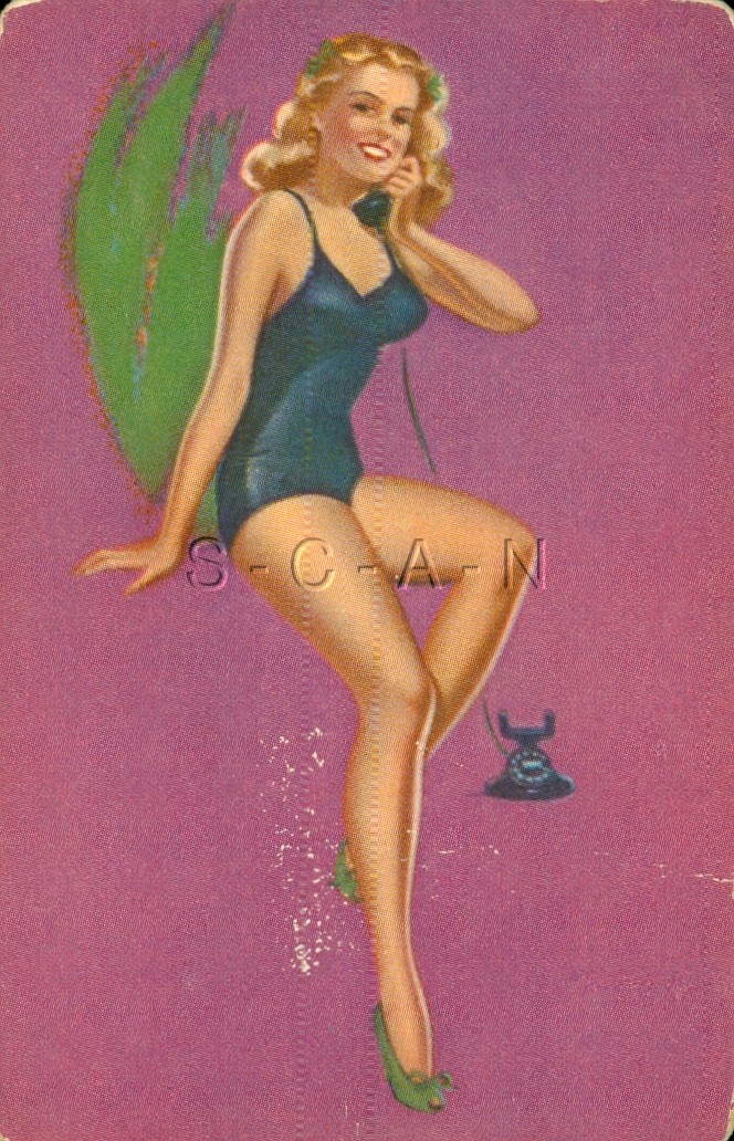 Vintage Semi Nude Playing Card- Woman Pinup Swap Trading Card- Telephone- Legs