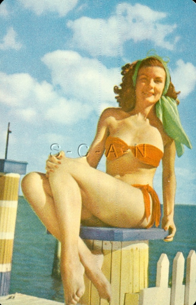 Vintage Seminude Playing Card- Woman Pinup Swap Trading Card- Feet- Legs- Bikini