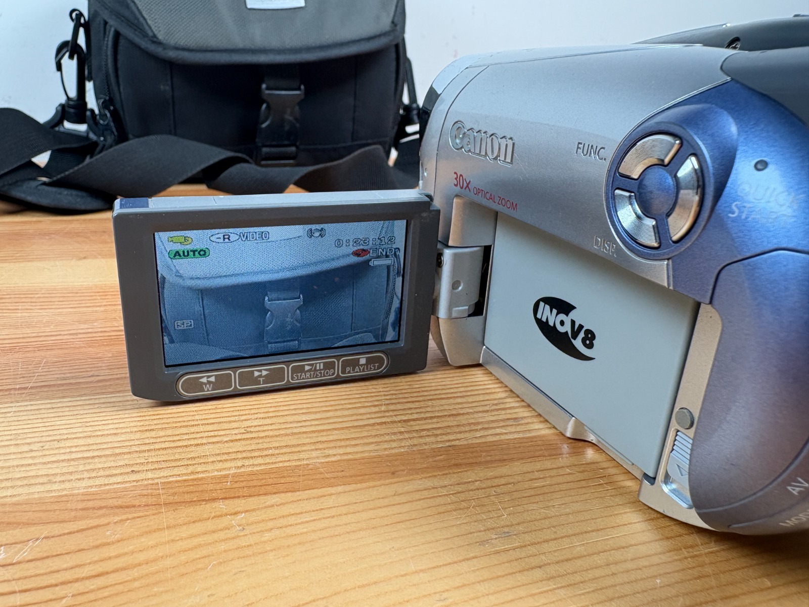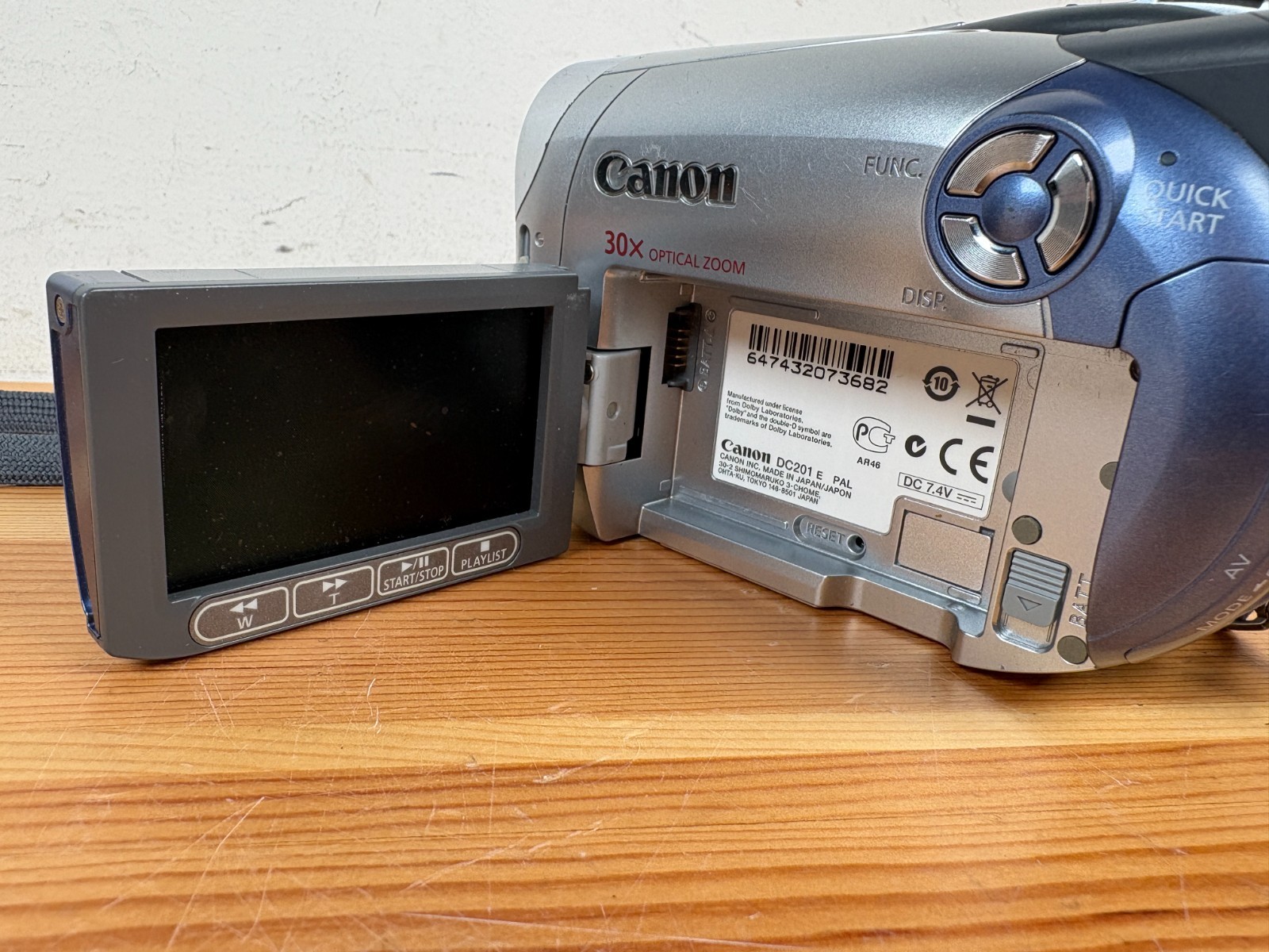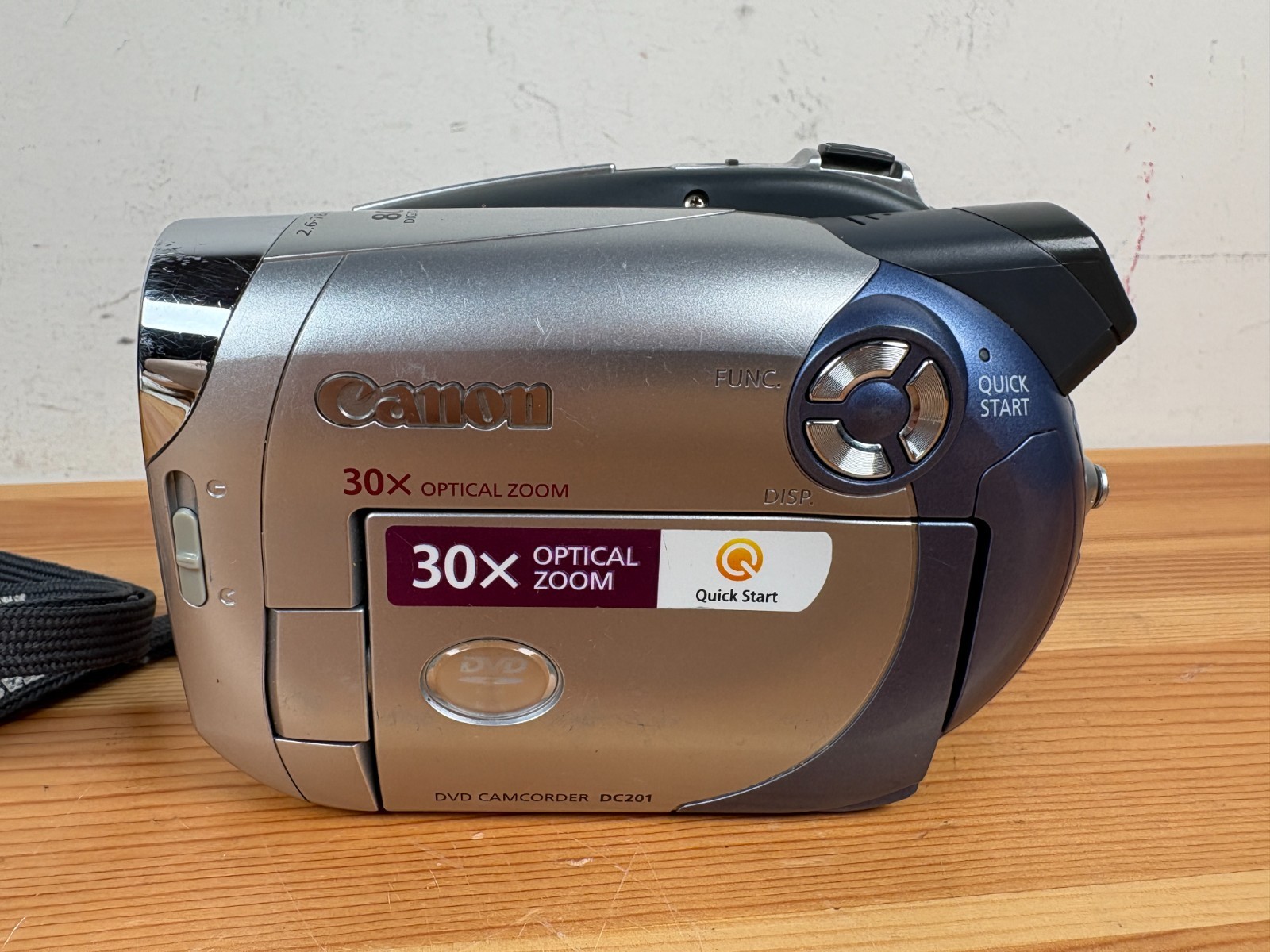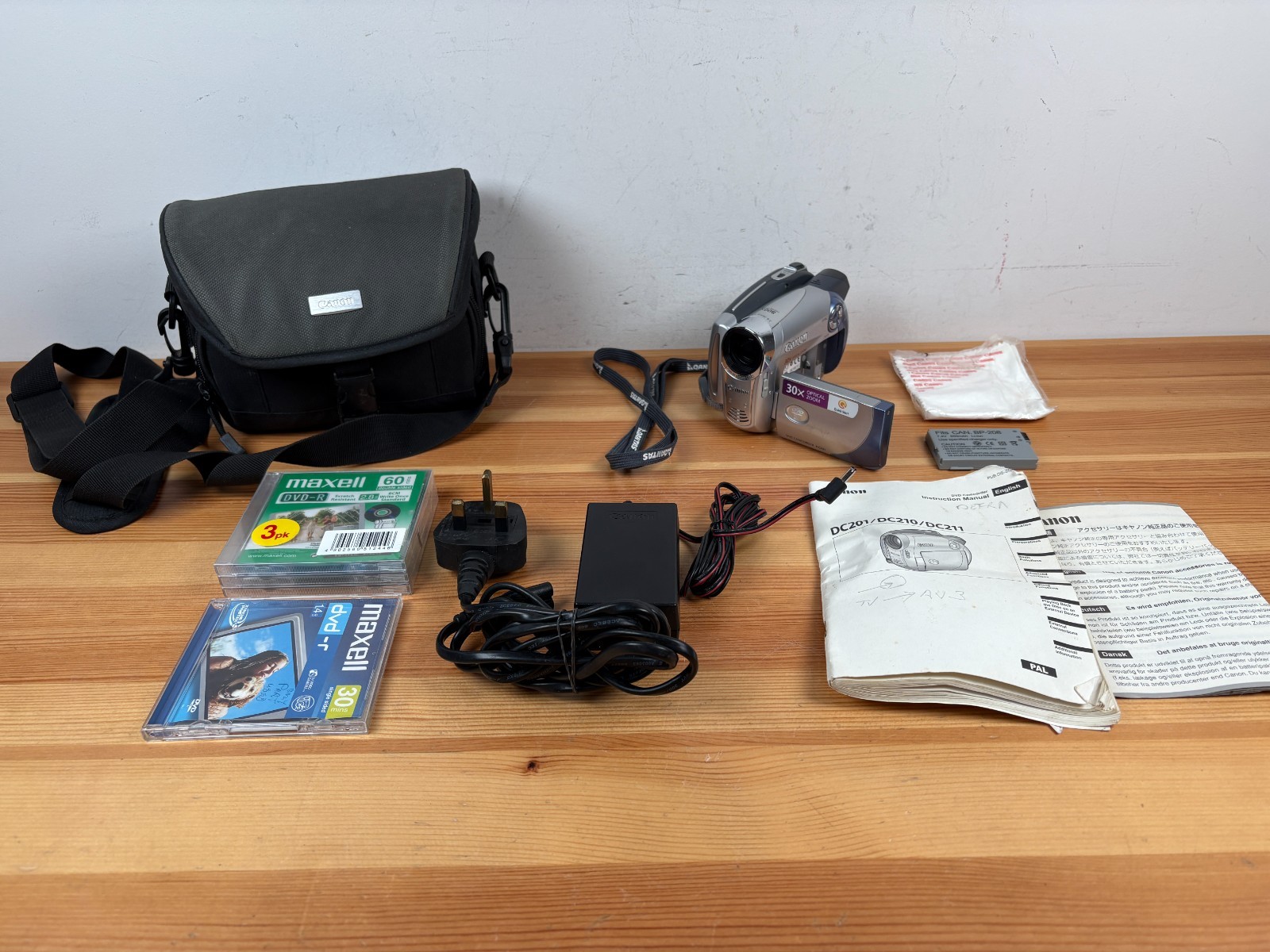 Canon DC201 Handheld DVD Camcorder. Tested and working. Used condition with some marks/scratches to camera (see photos) Includes camera, power cable, carry bag, and DVD-R discs. Free and fast UK delivery.