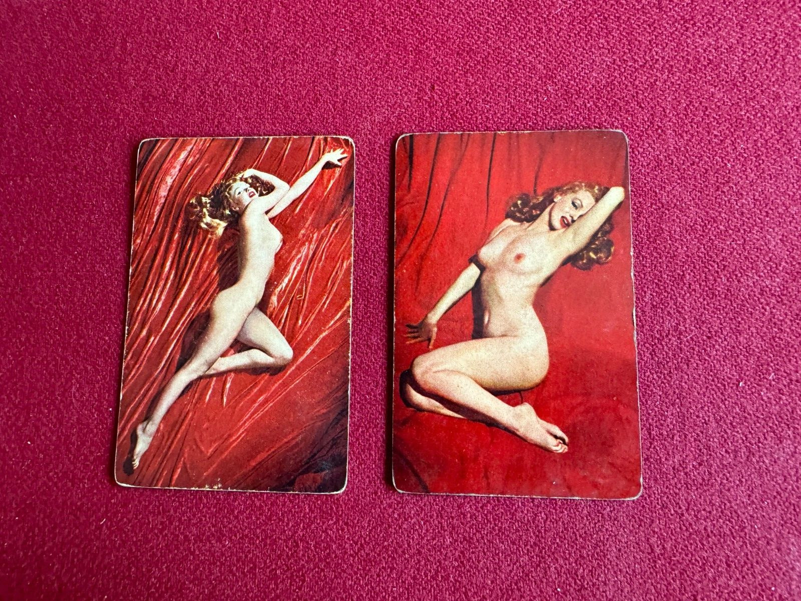 1950's, Marilyn Monroe, Tom Kelley "NUDE", "Golden Dreams" Vintage Playing Cards, 2-Cards (1 of Each Pose), Scarce. Nice Condition. (All backs of cards will be different suites). Very Cool Display Collectibles of the Super, Sexy, Hollywood Icon!! "Happy Birthday, Mr. President..."