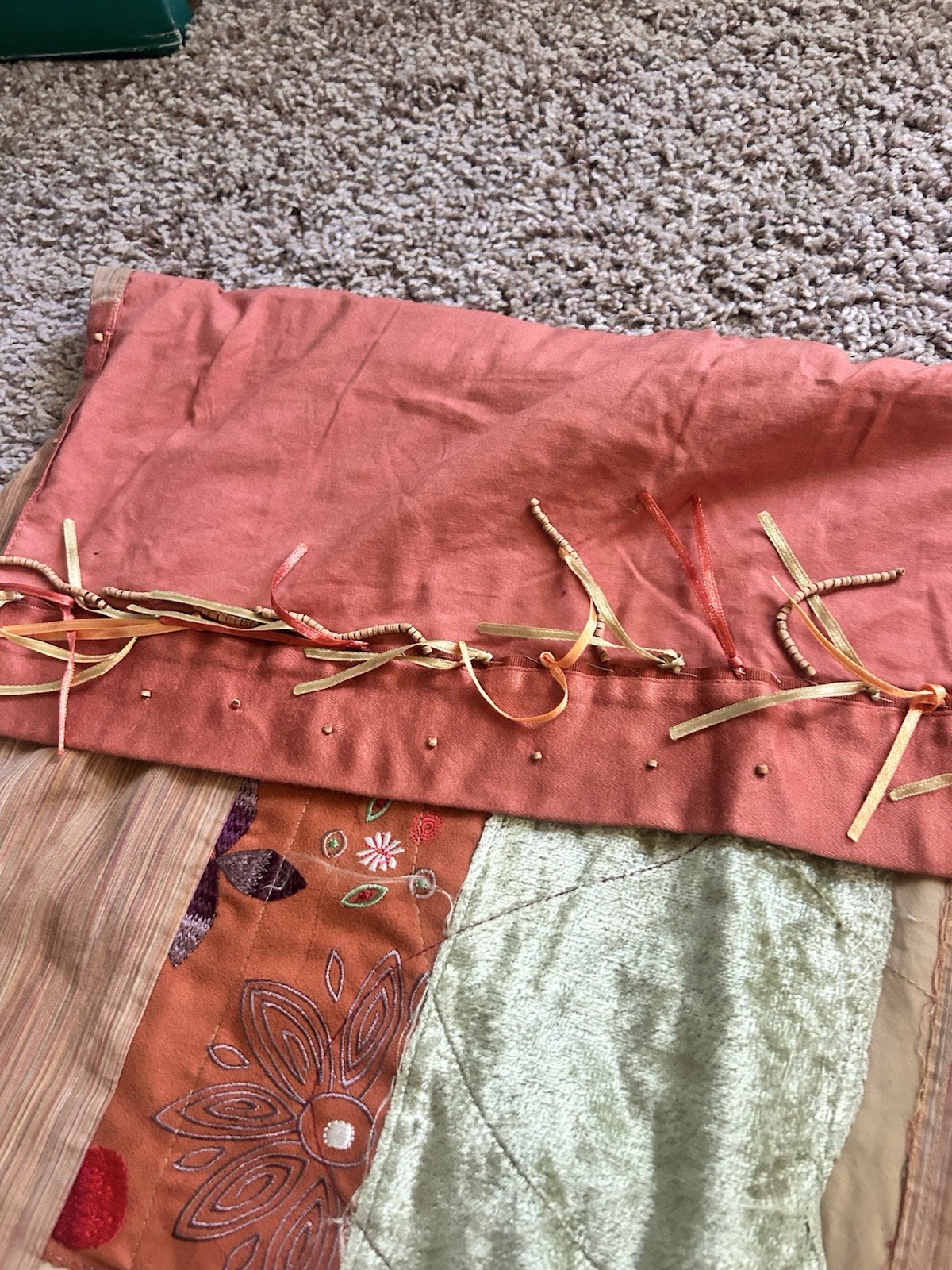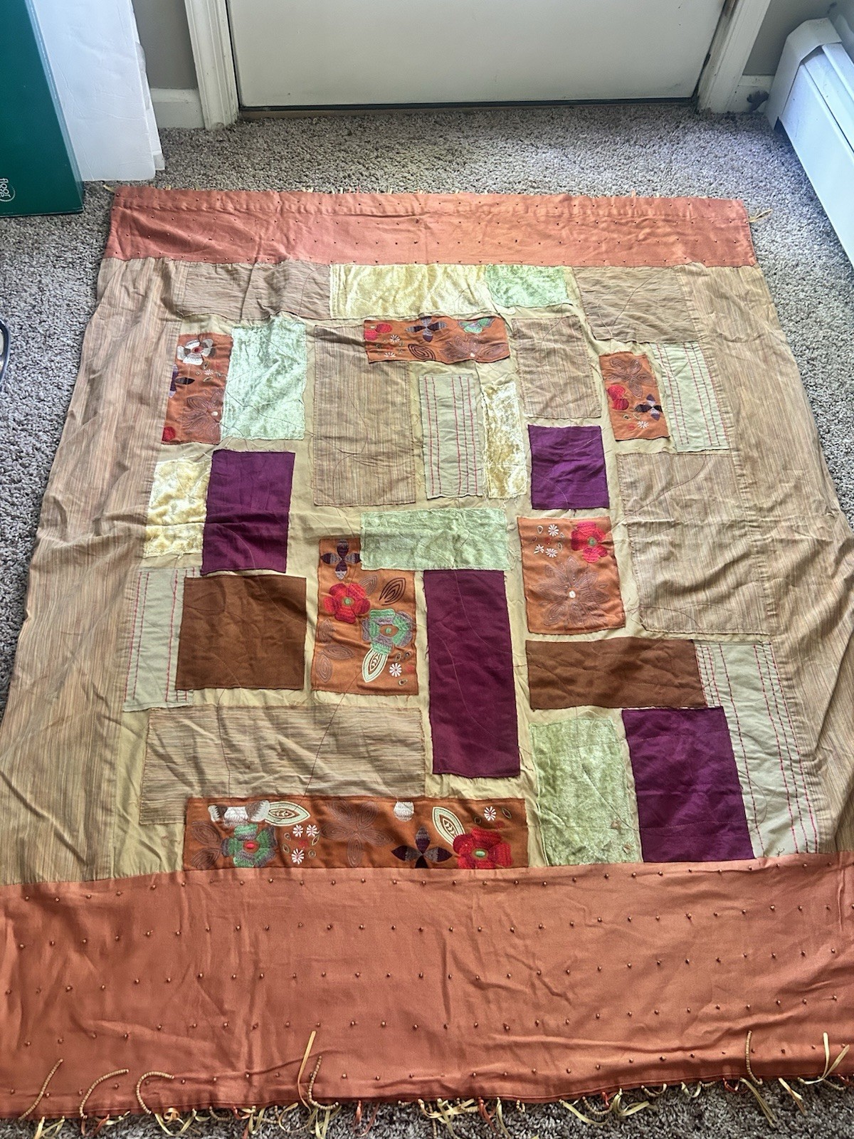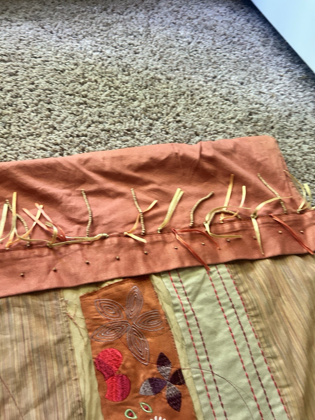 This Vintage Pier One throw / drapery is a stylish and decorative addition to any room in your home. I think it’s Made from a cozy cotton blend in a multicolor design it does have a place where u could put a tfew d through so i am saying its a throw but i believe its a drapery panel . Perfect for adults looking to add a boho touch to their living space, this throw combines functionality with a touch of vintage charm from Pier 1. Ideal for adding warmth and flair to your home décor.