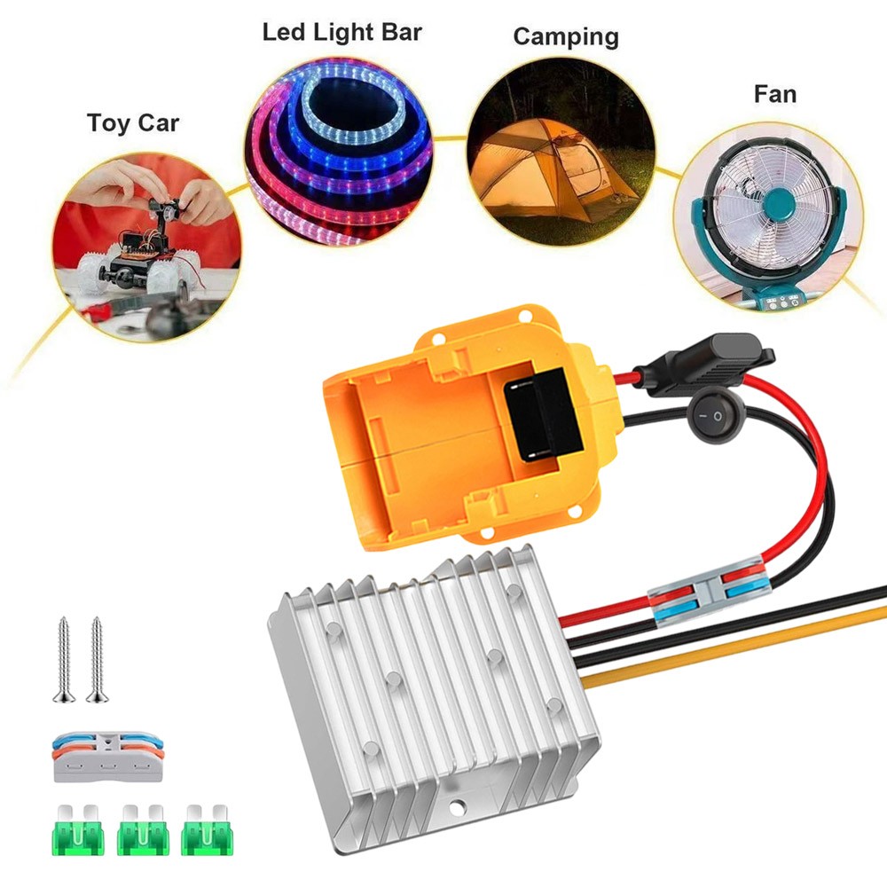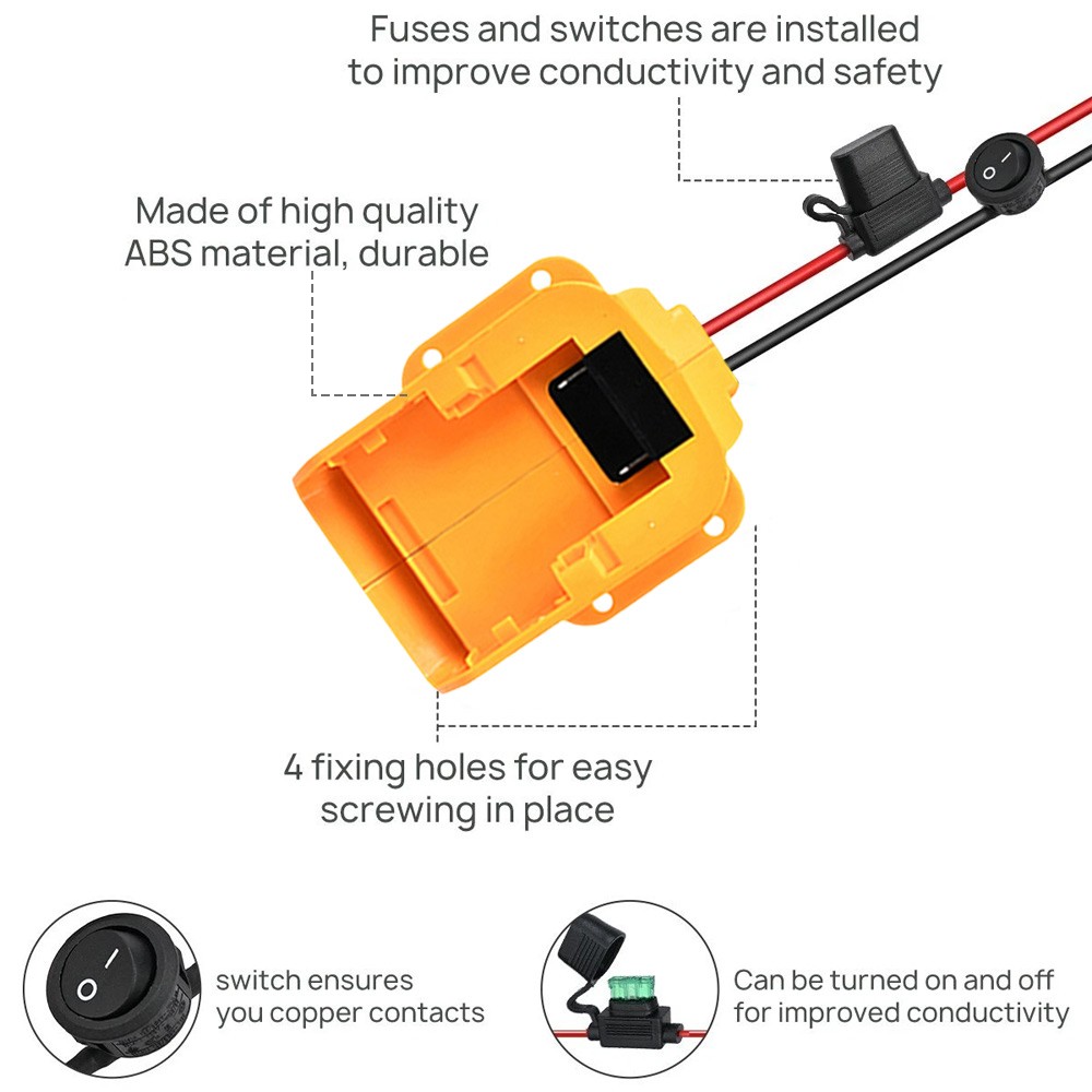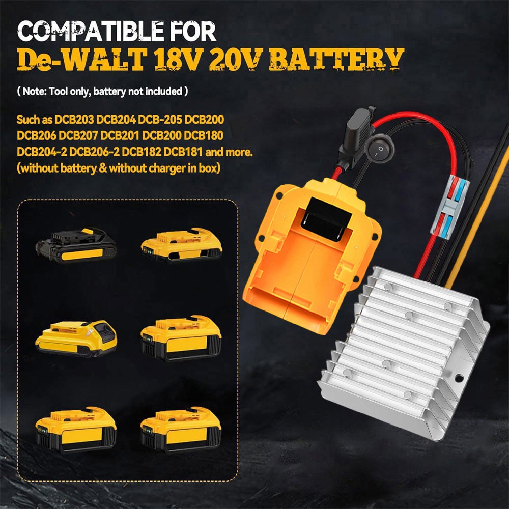 This power wheel adapter is compatible with for DEWALT18V 20V Battery models such as DCB182, DCB183, DCB184, DCB185, DCB200, DCB201, DCB203, DCB204, DCB205, DCB206, DCB208, DCB230, DCB240, and more. The heat-resistant wire ensures durability and safety during operation. Note: batteries are not included.