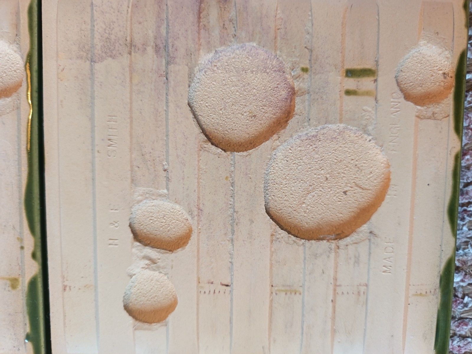They are in overall good condition with no breaks. There are some signs of age/storage related gloss wear/surface marks with weathering/crazing to the glaze (see photos)